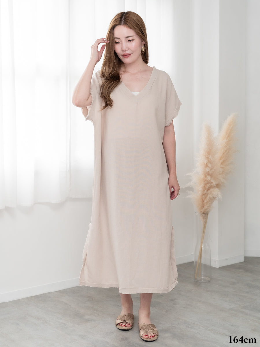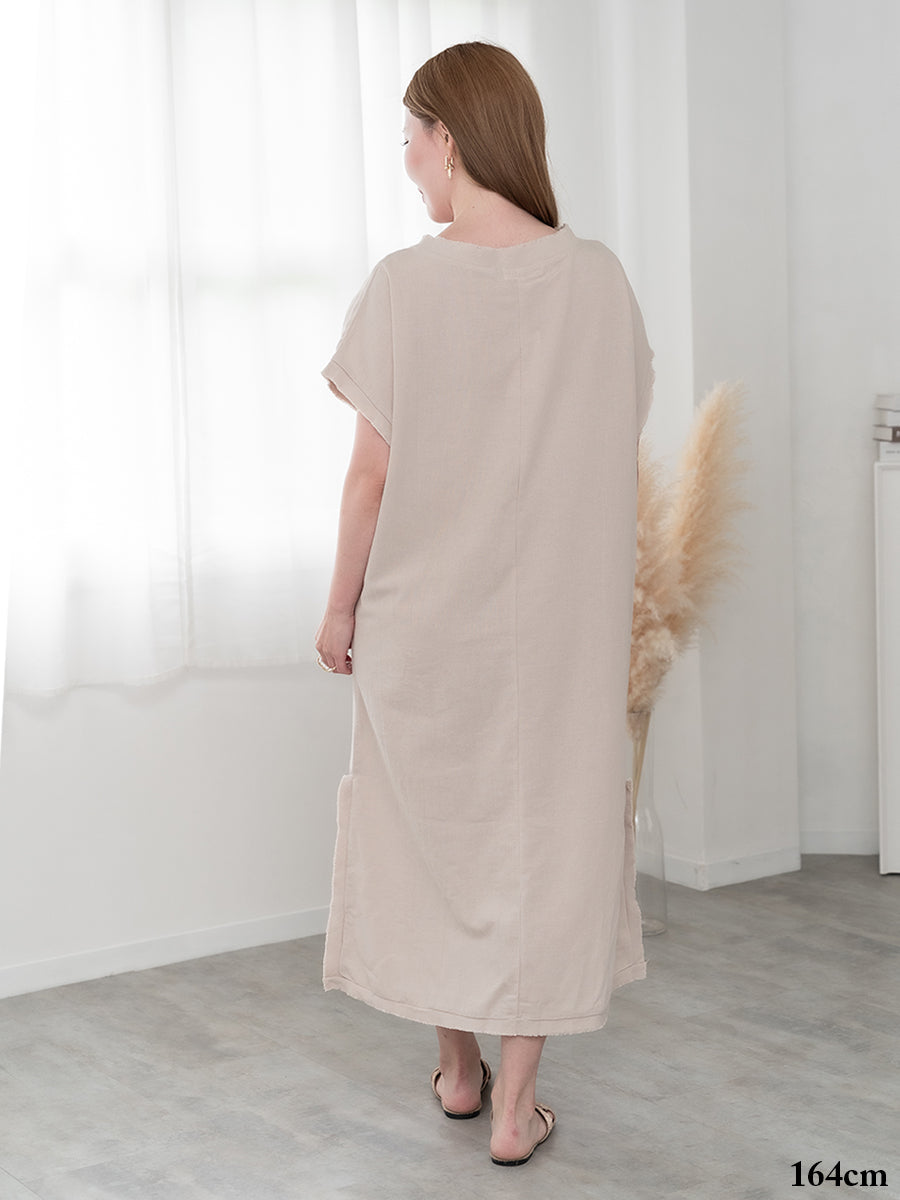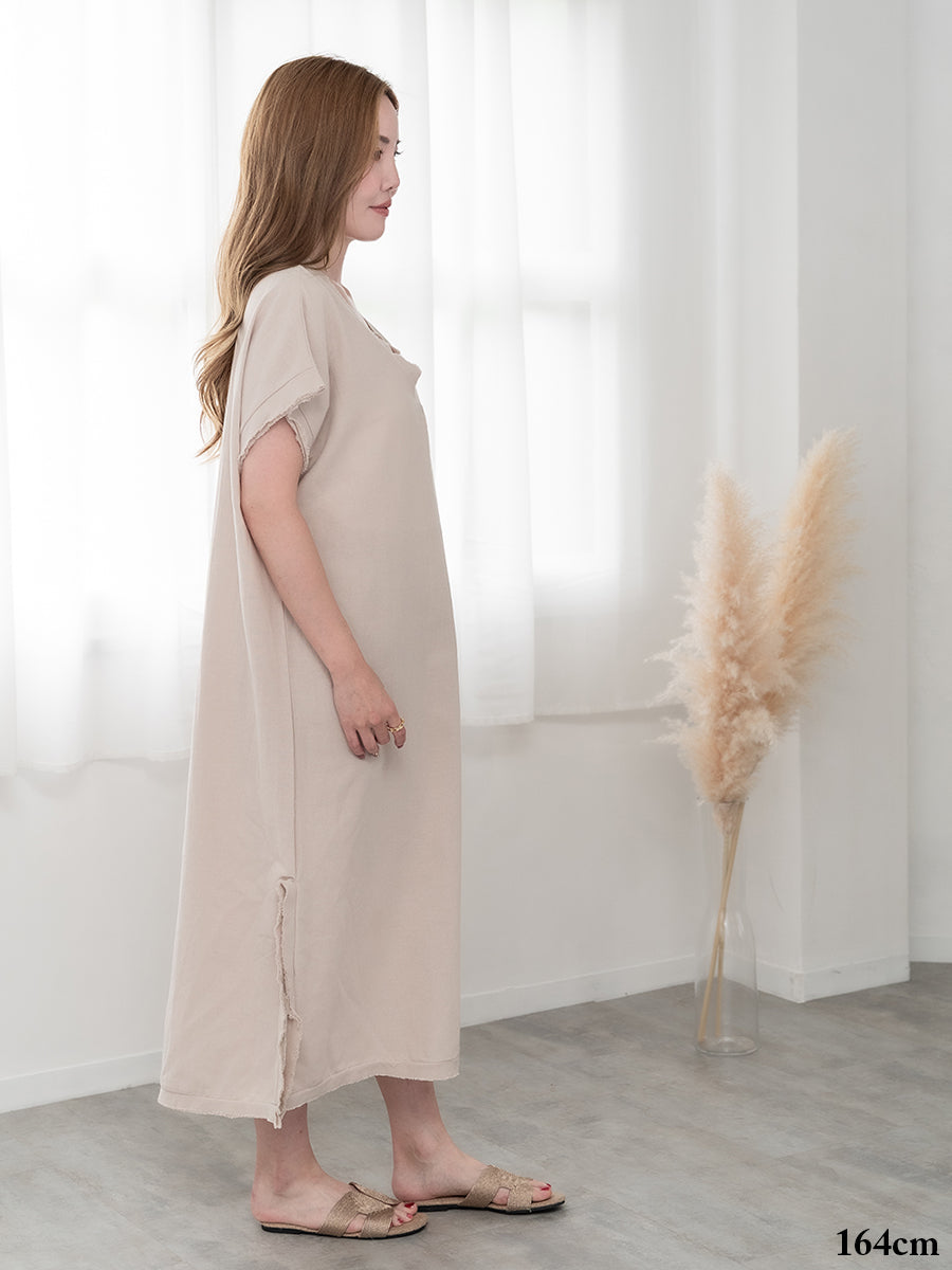 リネンのような表情をもつ、コットンカフタンワンピース。