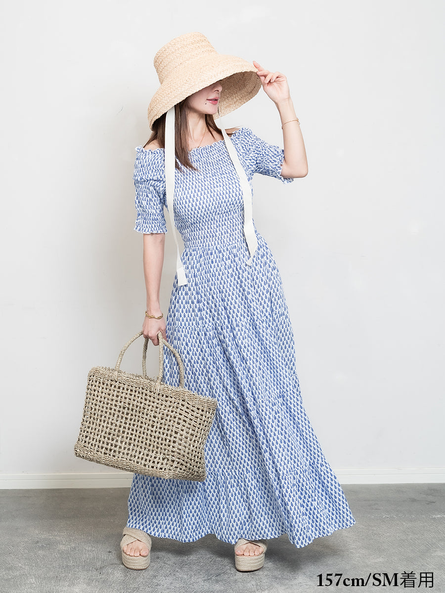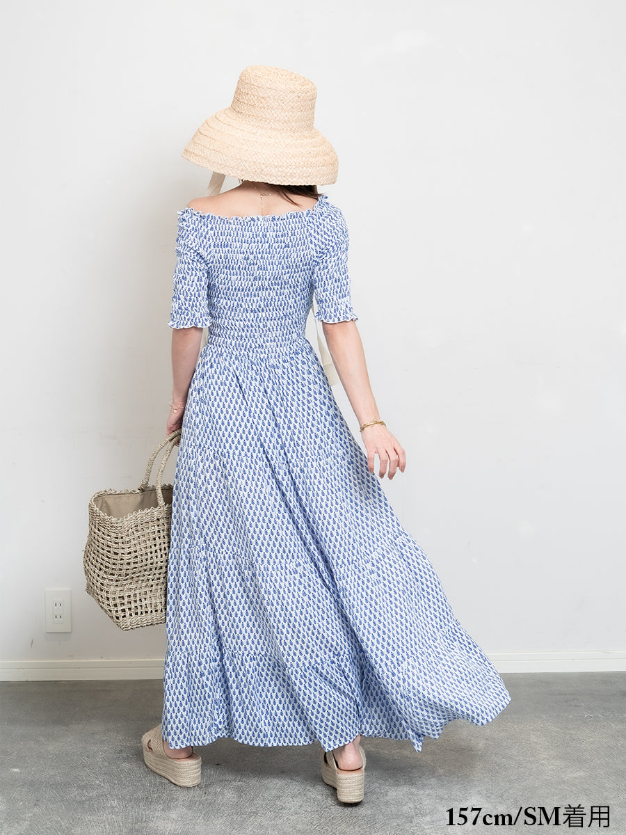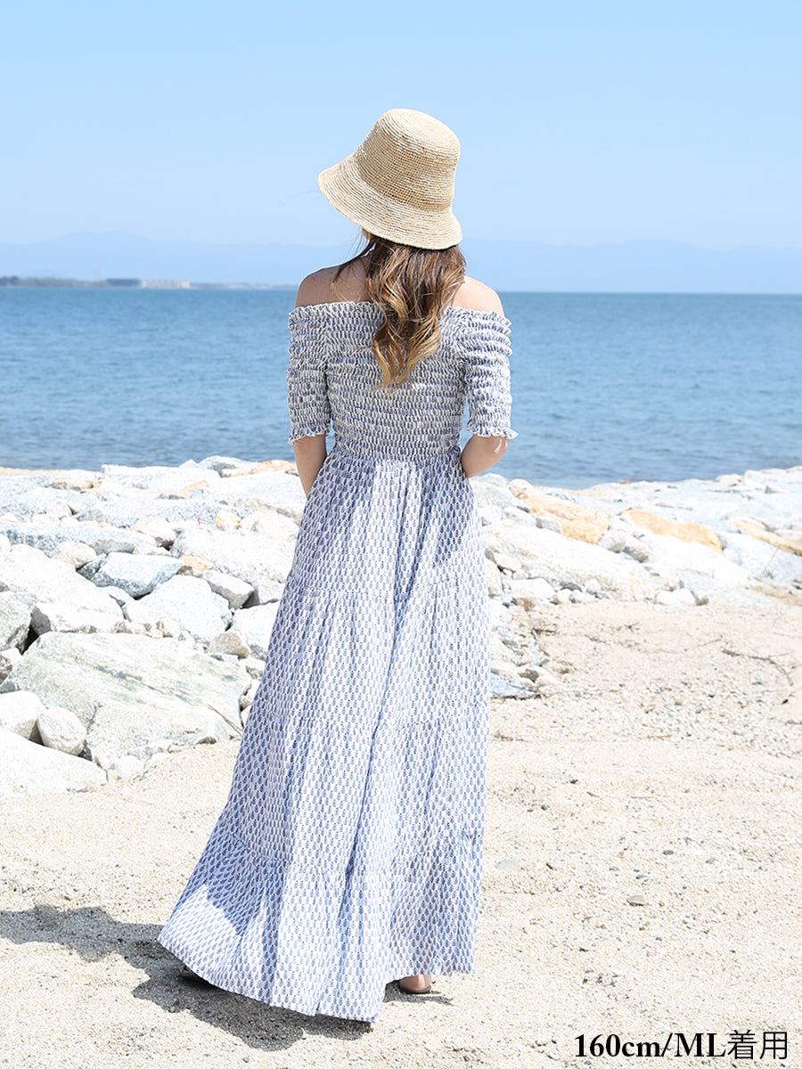 LAUT BLUE(ラウトブルー)ティアードオフショルマキシワンピース/ペイズリー柄