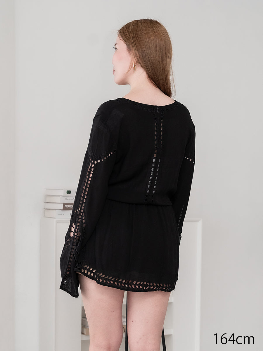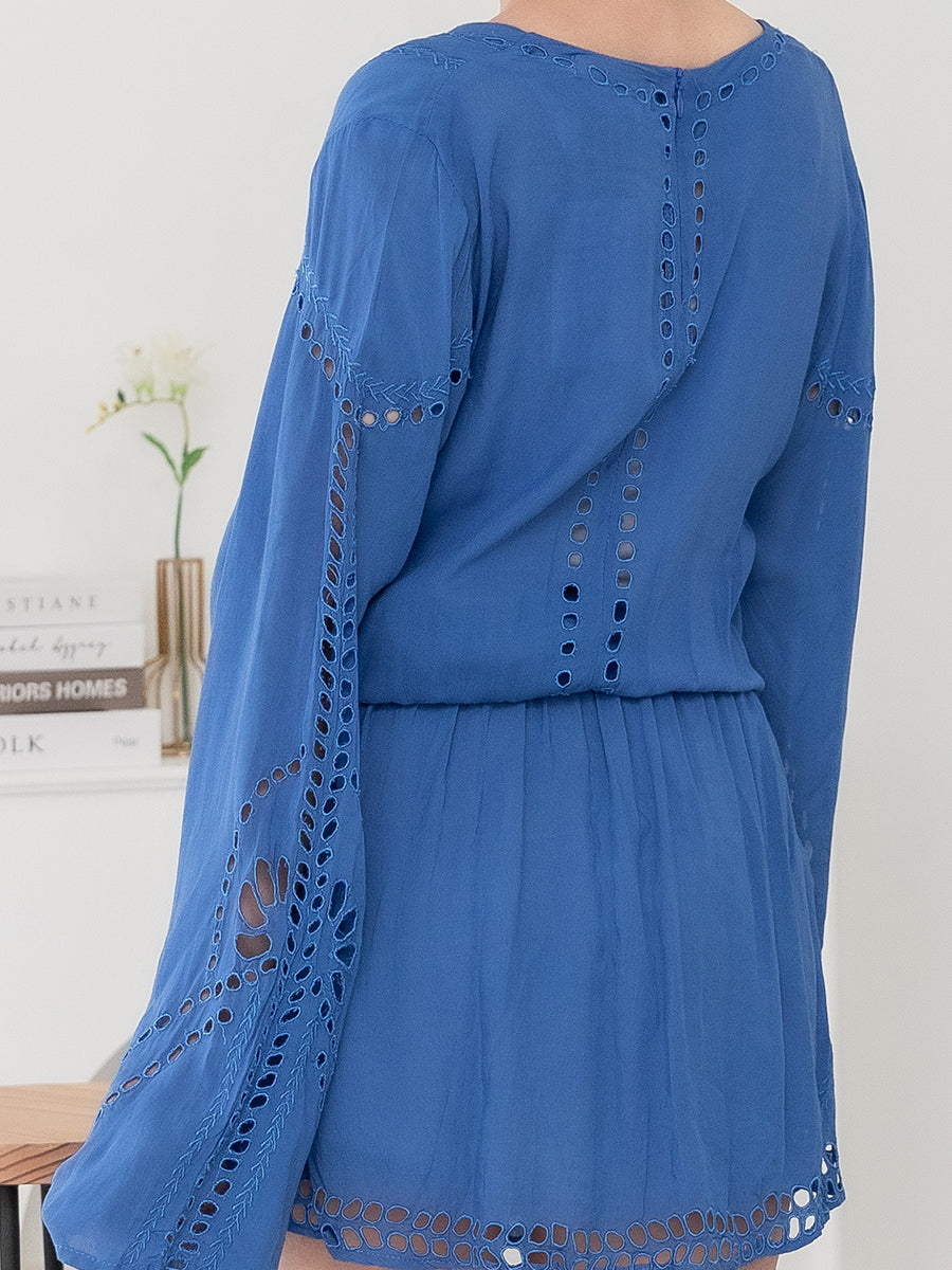 LAUT BLUE(ラウトブルー)カットワーク刺繍長袖チュニックワンピース