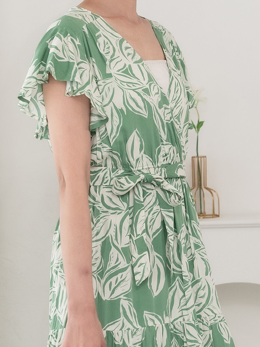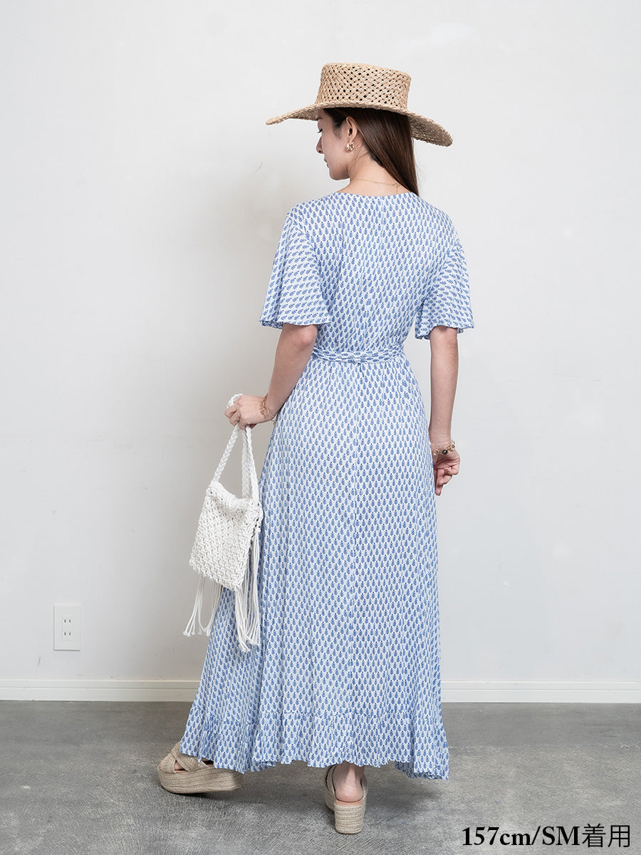 LAUT BLUE(ラウトブルー)カシュクールマキシワンピース/リトルリーフ柄