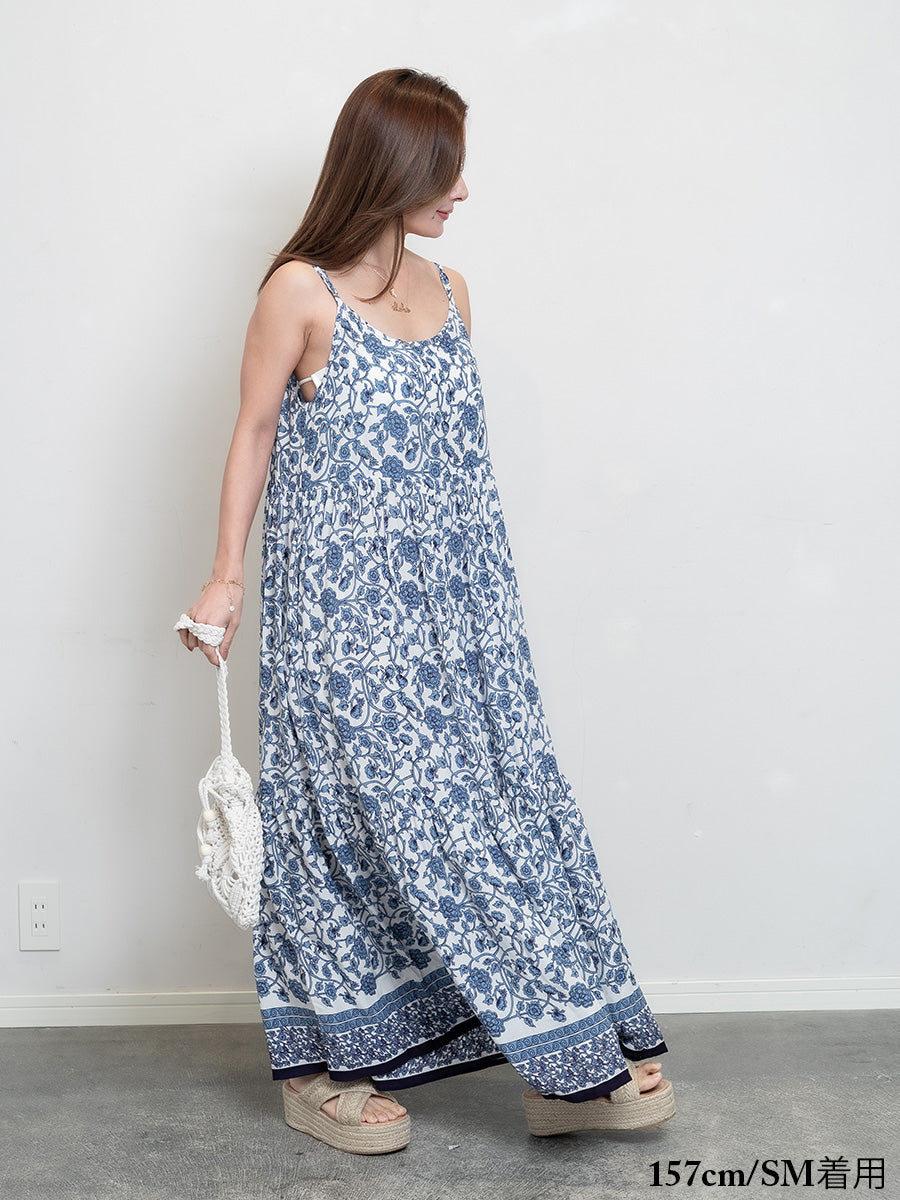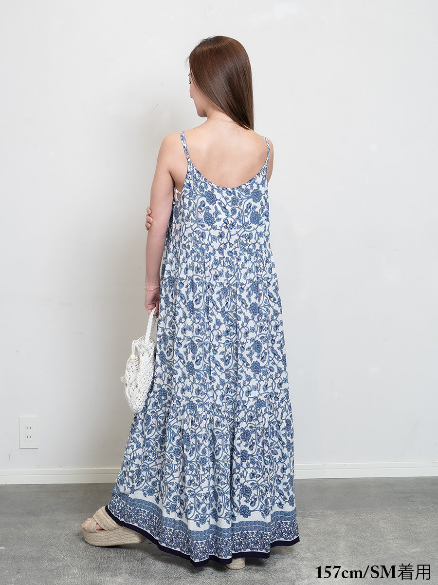 LAUT BLUE(ラウトブルー)キャミソールティアードワンピース/ダマスク柄