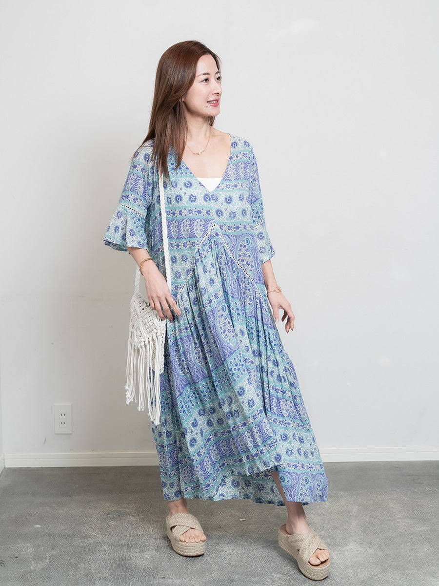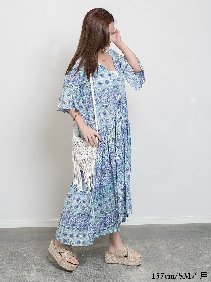 LAUT BLUE(ラウトブルー)ペイズリー柄ハイローマキシワンピース