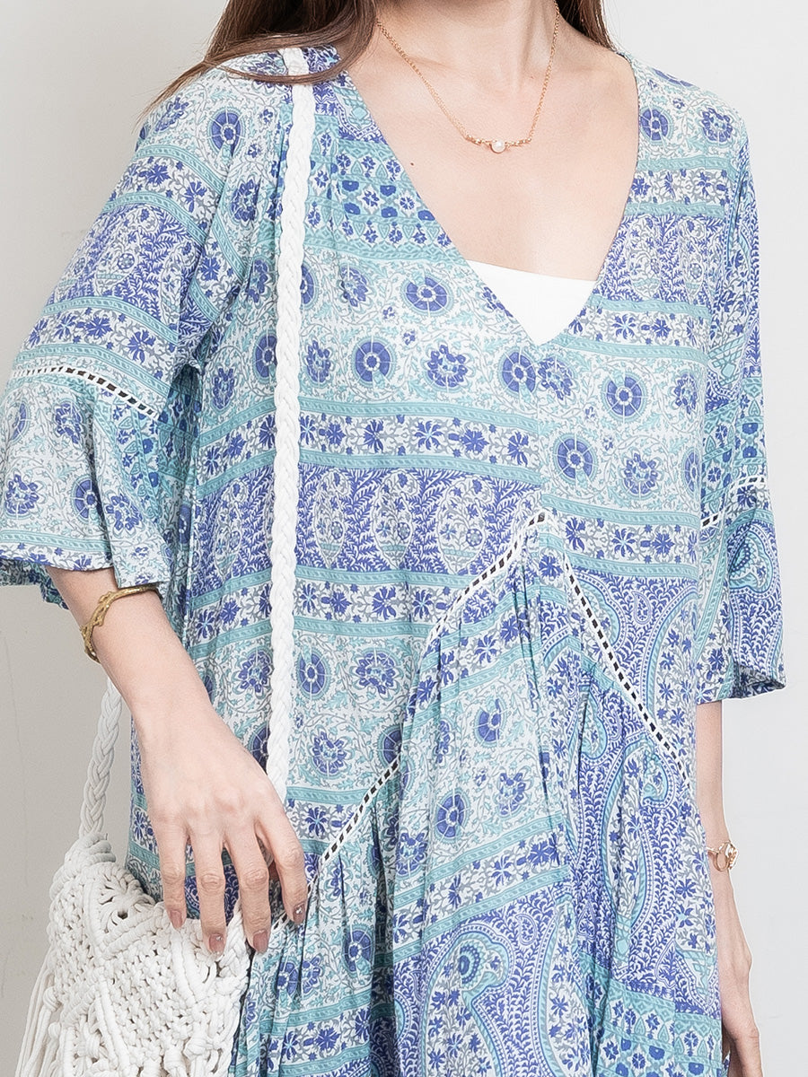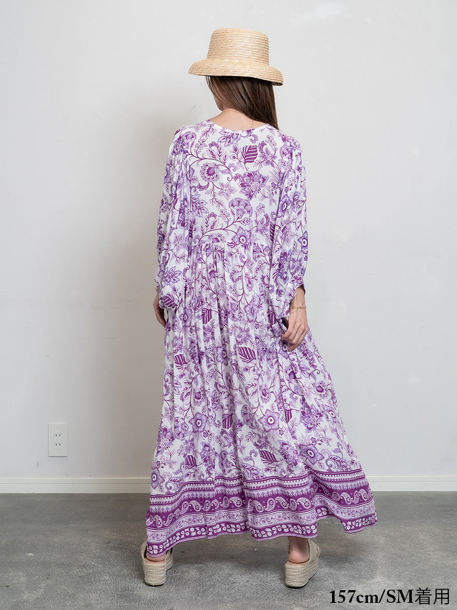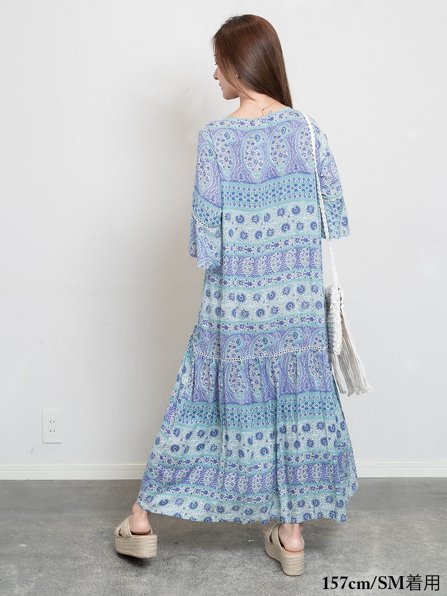 LAUT BLUE(ラウトブルー)ティアード長袖マキシワンピース/ペイズリー柄