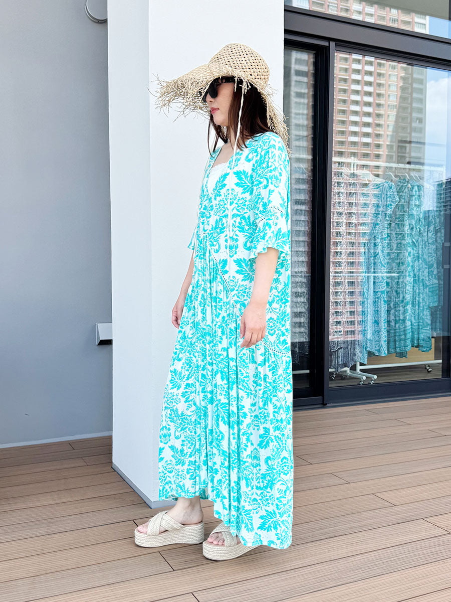 LAUT BLUE(ラウトブルー)カシュクールマキシワンピース/ターコイズ花柄