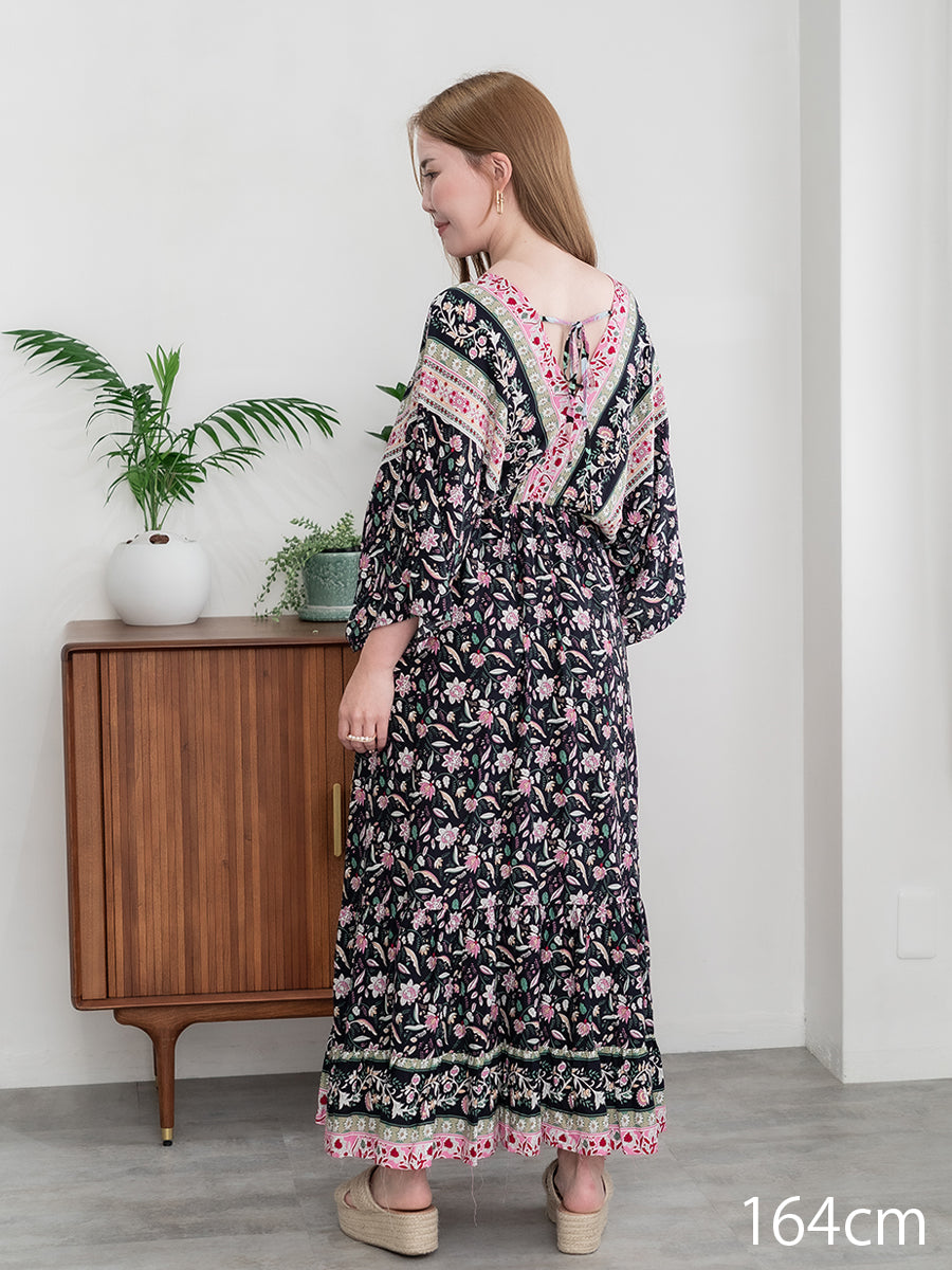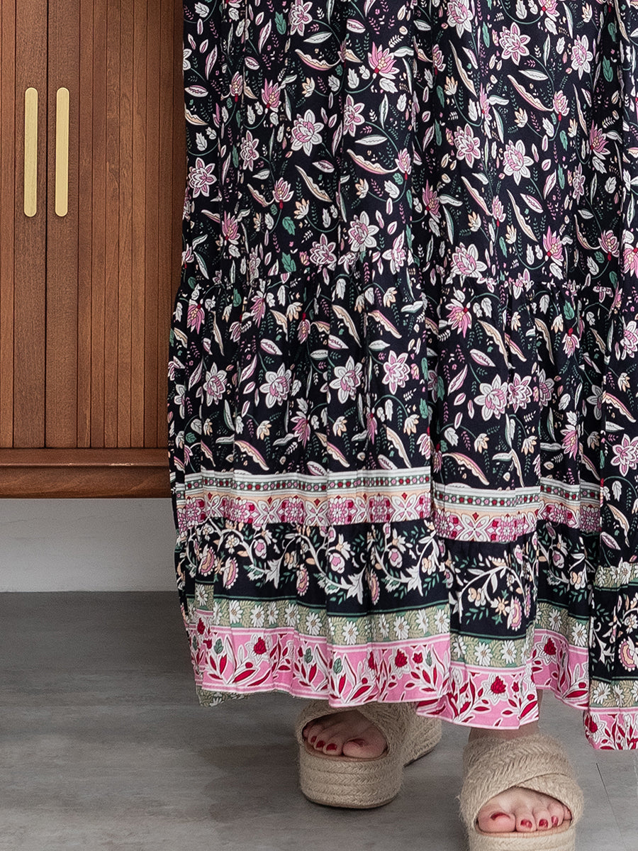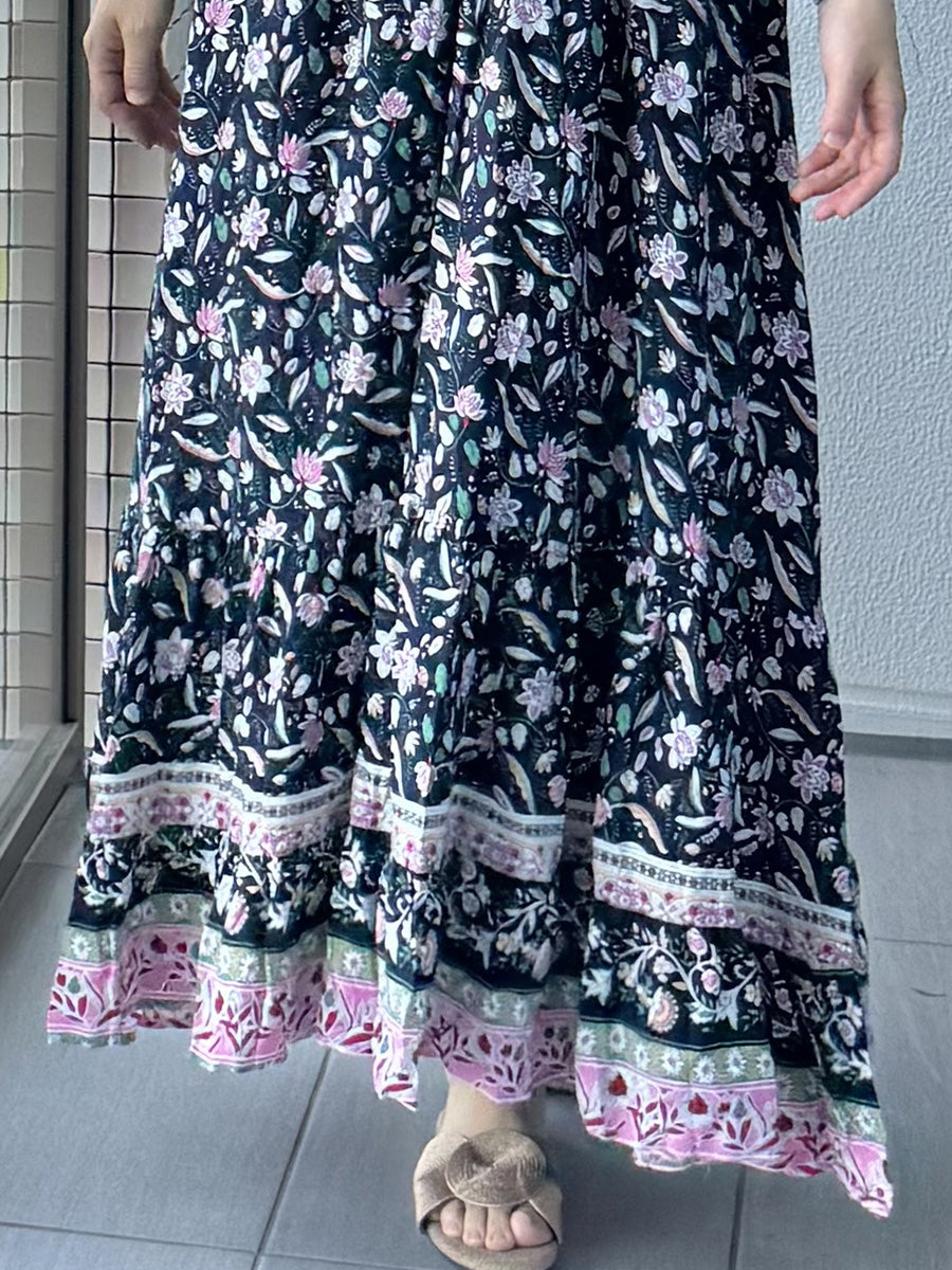 romy by the sea(ルーミーバイザシー)大人花柄ブラックマキシワンピース