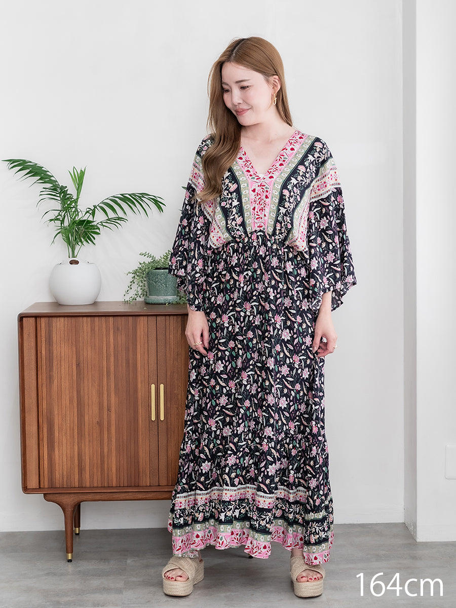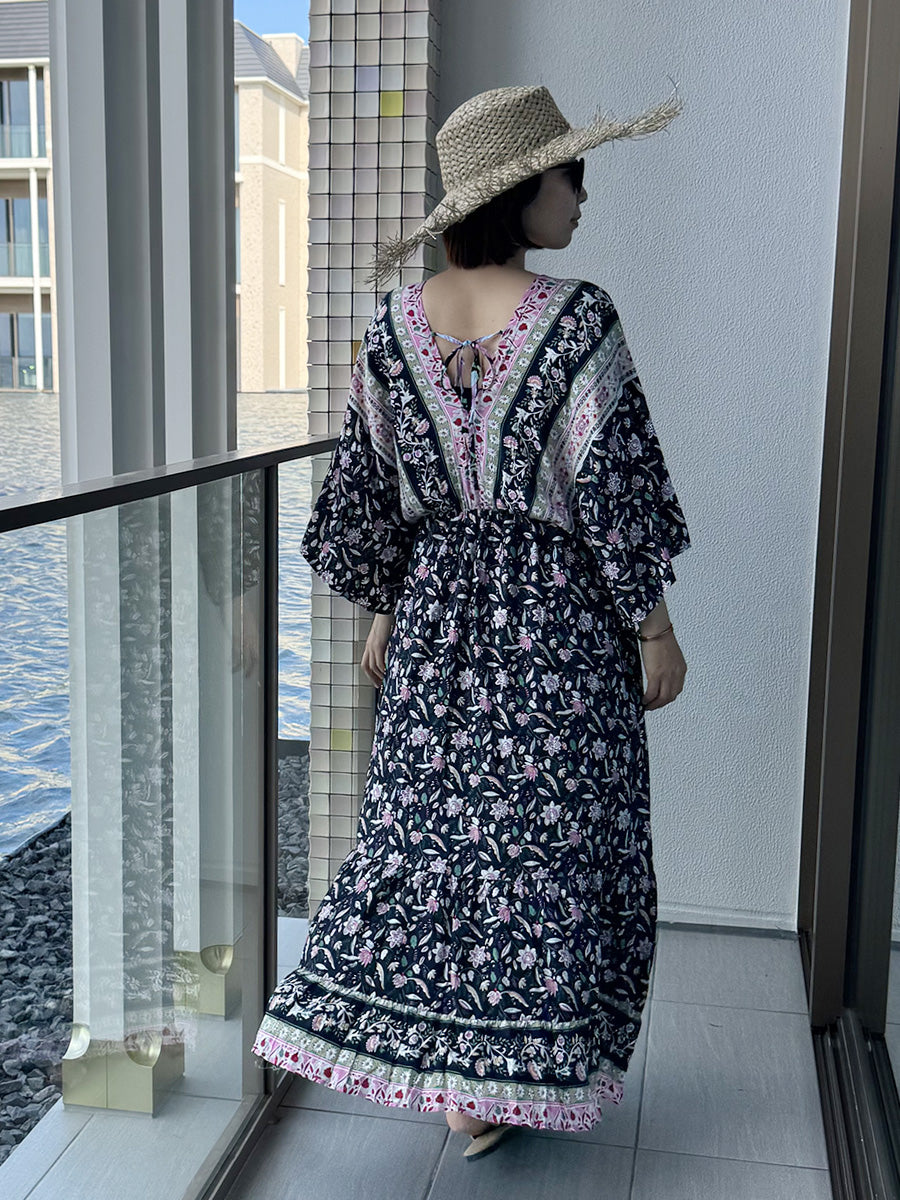 romy by the sea(ルーミーバイザシー)花柄バードVネックマキシワンピース