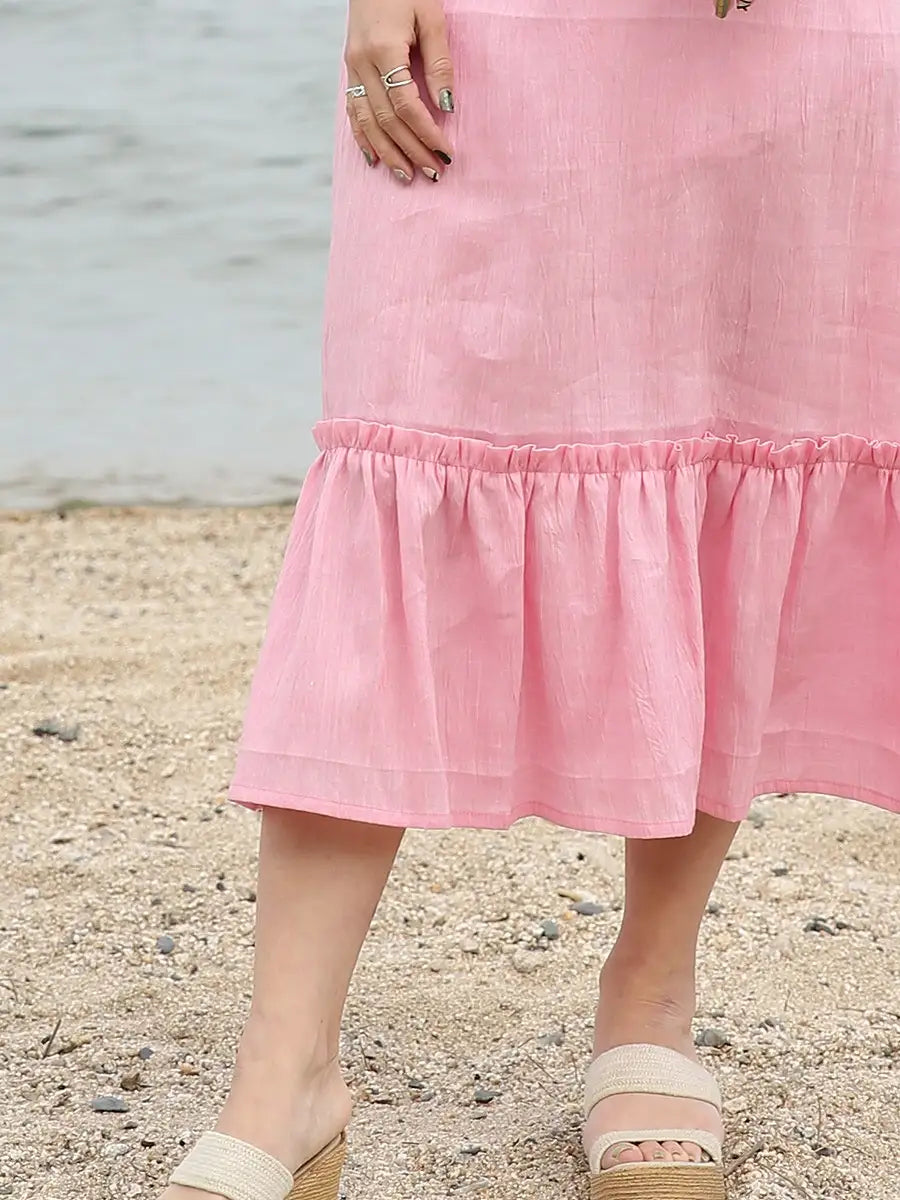 MOLABI(モラビ)近江ちぢみリネンマキシワンピース/ピンク