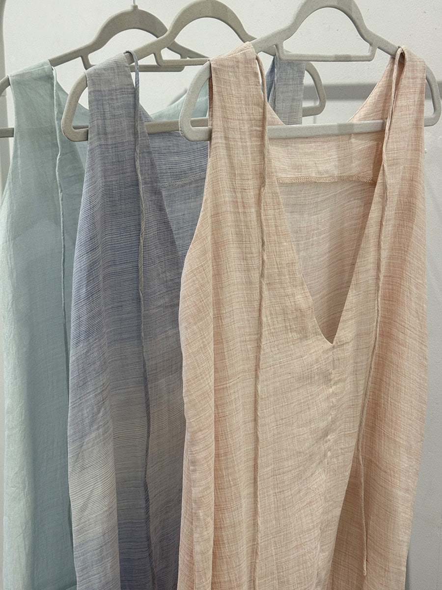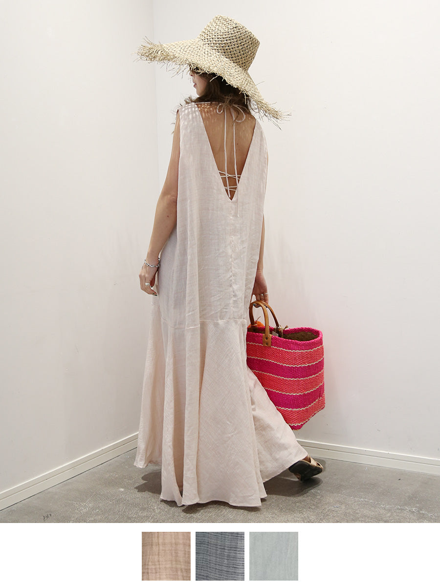 MOLABI(モラビ)近江ちぢみリネンノースリーブマキシワンピース