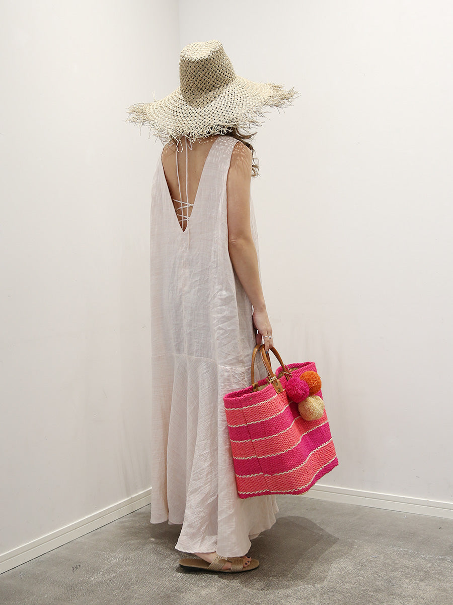 背中が見えるデザインのリゾートワンピースですので、インナーに気を使ってあげてください。