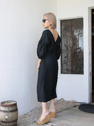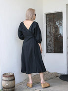 バルーン袖が可愛いです。上品なブラックカラーでいろんなシーンで活躍してくれるワンピースです。