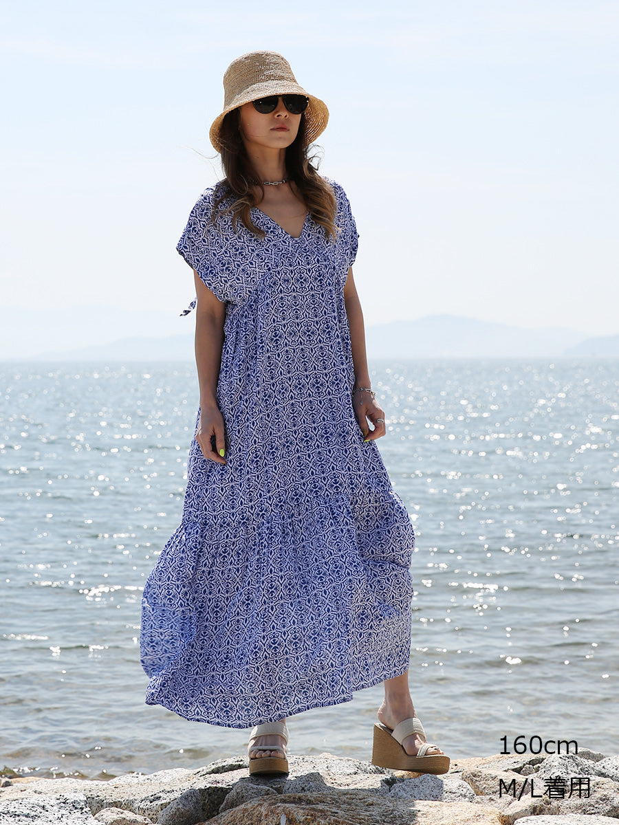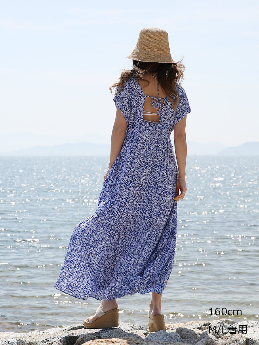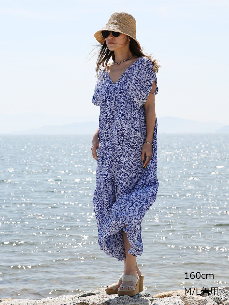 LAUT BLUE(ラウトブルー)サントリー二ノースリーブマキシワンピース