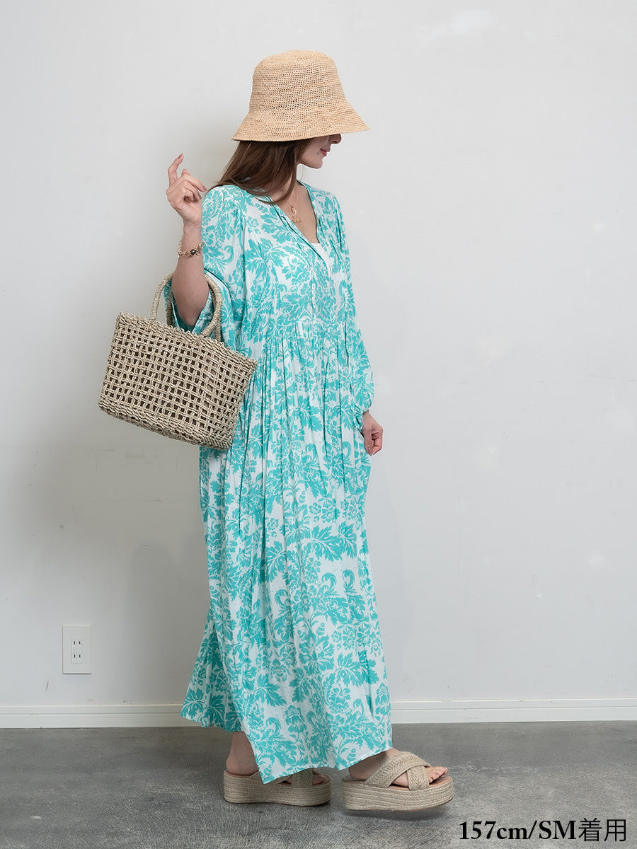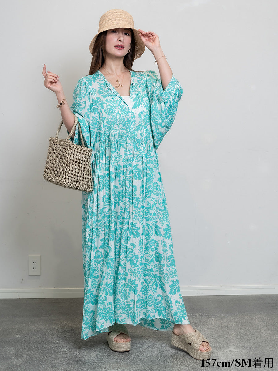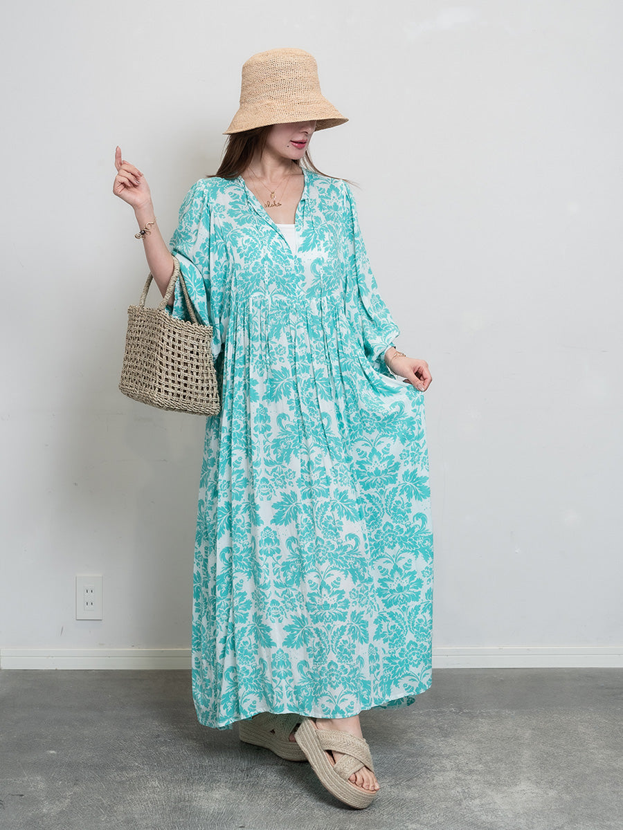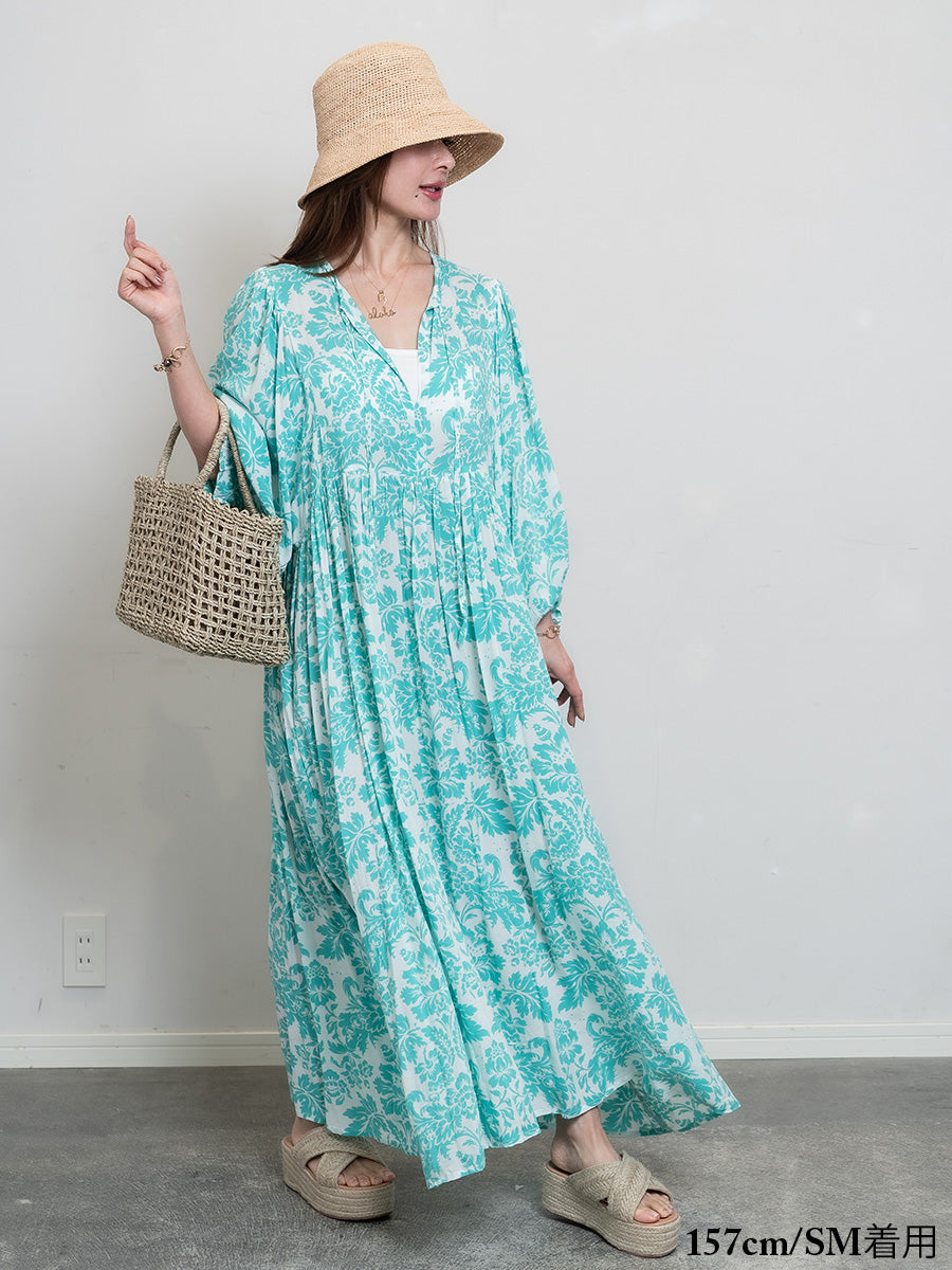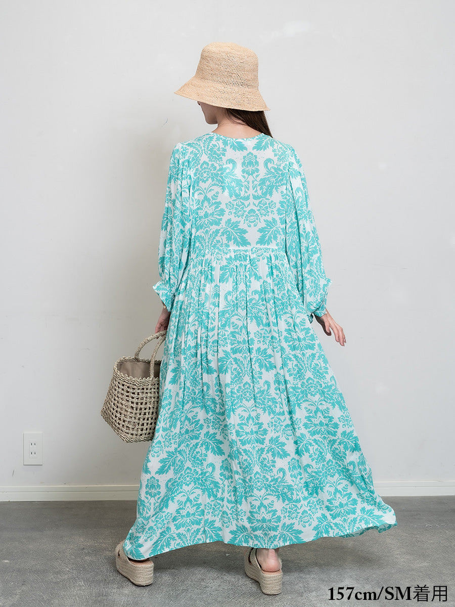 LAUT BLUE(ラウトブルー)リラクシー長袖ワンピース/ダマスク柄