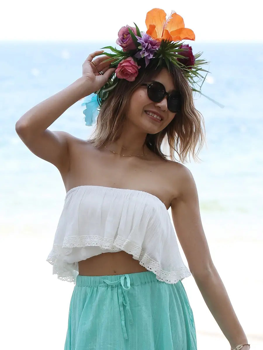 roomy by the sea(ルーミーバイザシー)クリンクルレースショート丈トップス