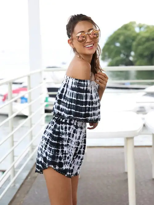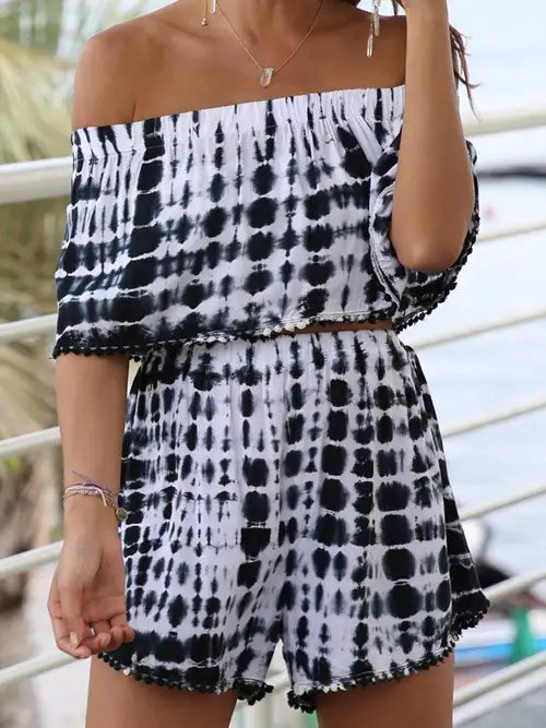 タイダイ柄のオフショルとショートパンツのセットアップです。