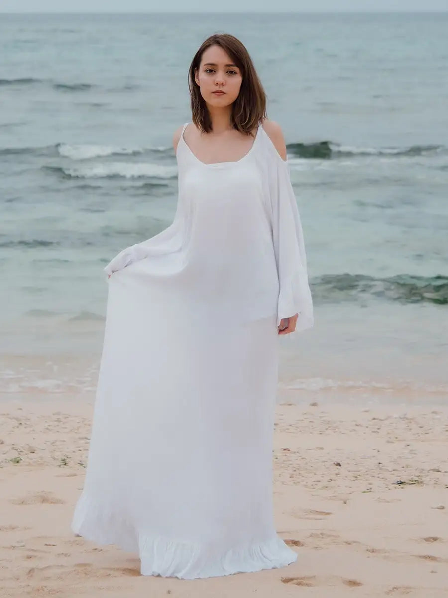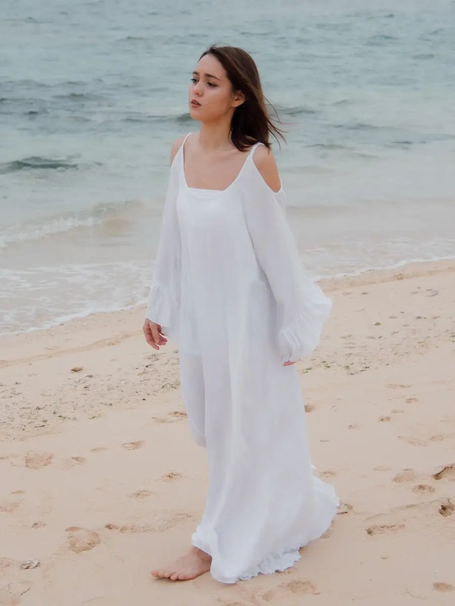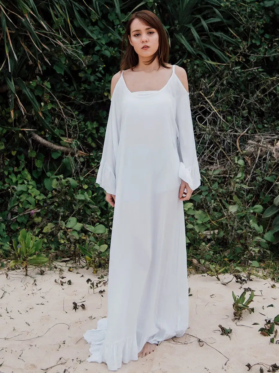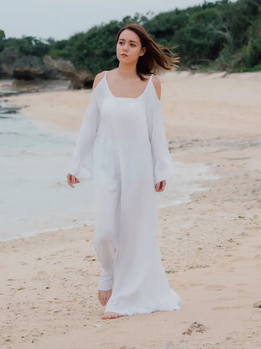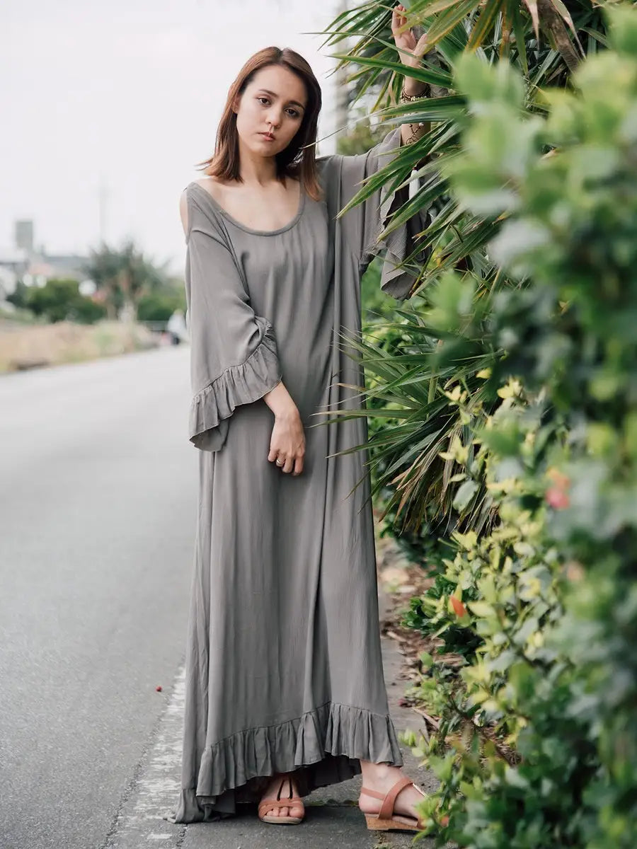 サラッと1枚でお洒落なリゾートスタイルが完成するマキシワンピースです。