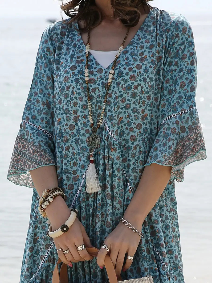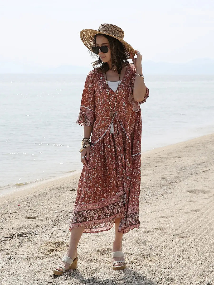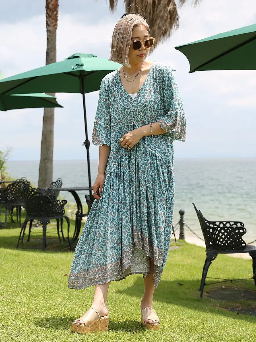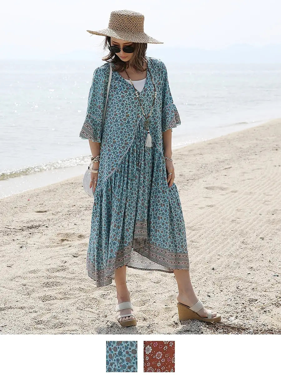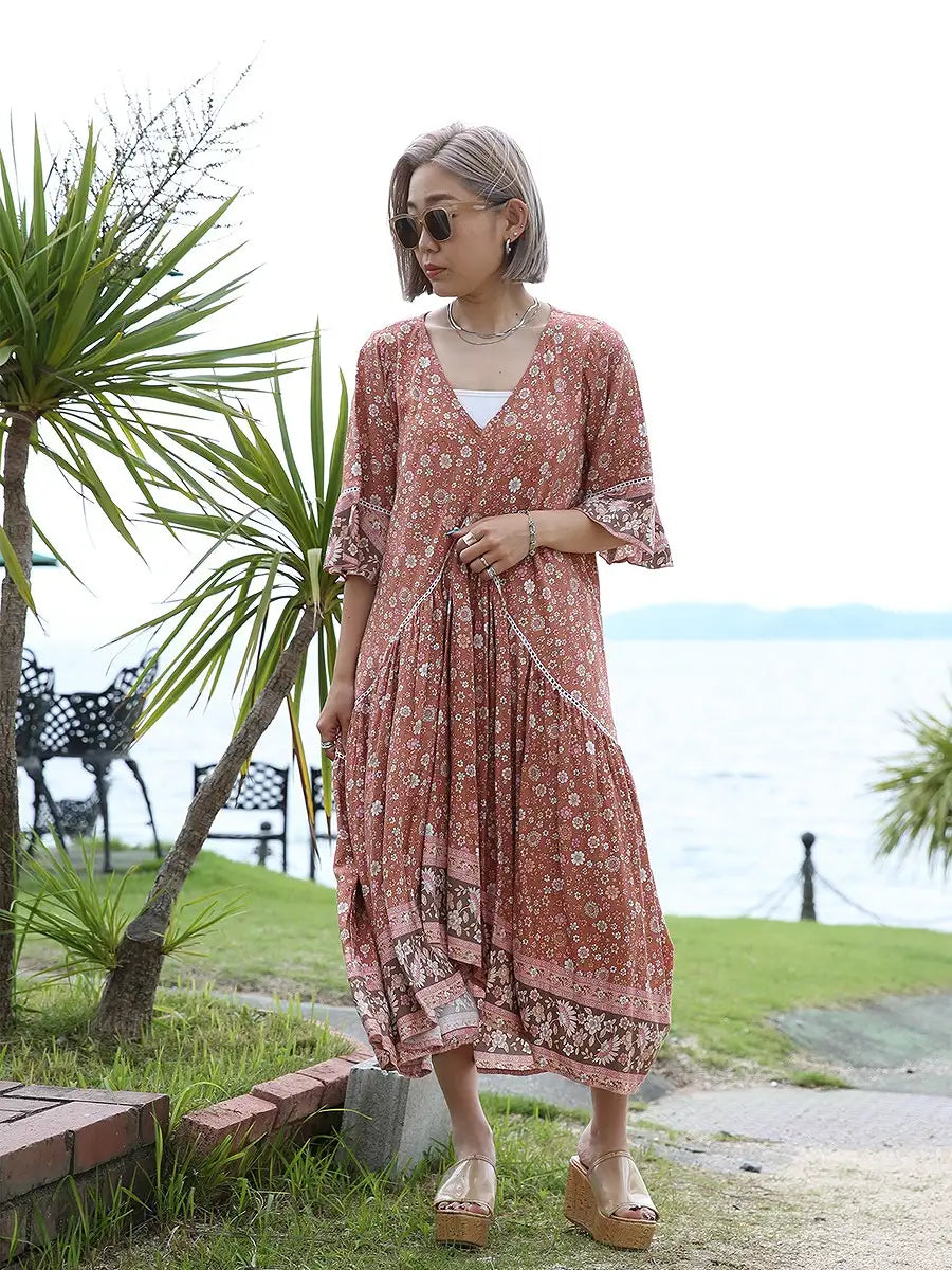 小さな花柄が全体にプリントされた大人カワイイリゾートワンピースです。