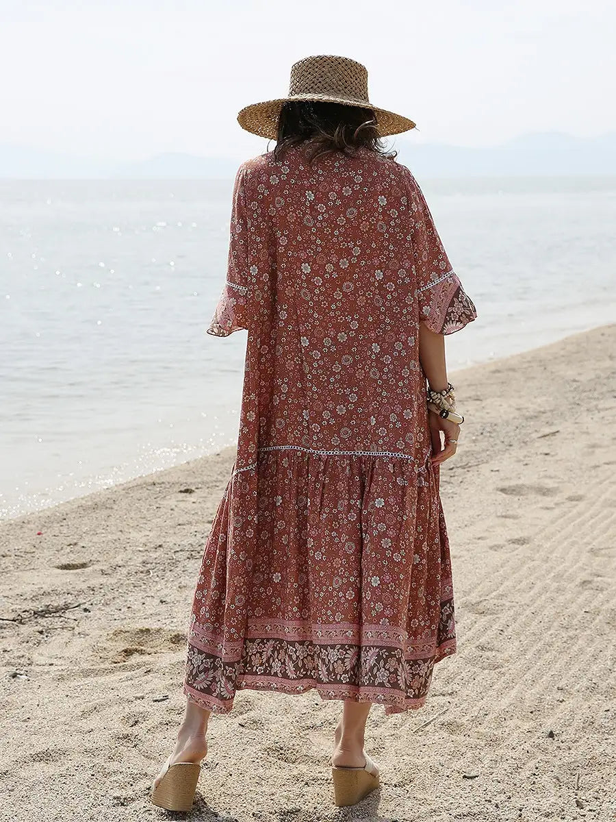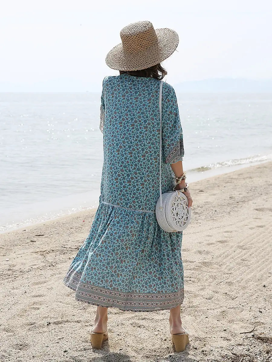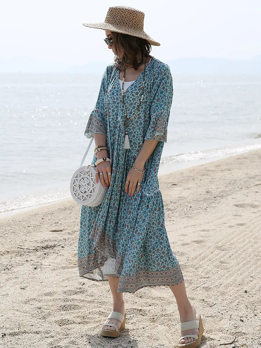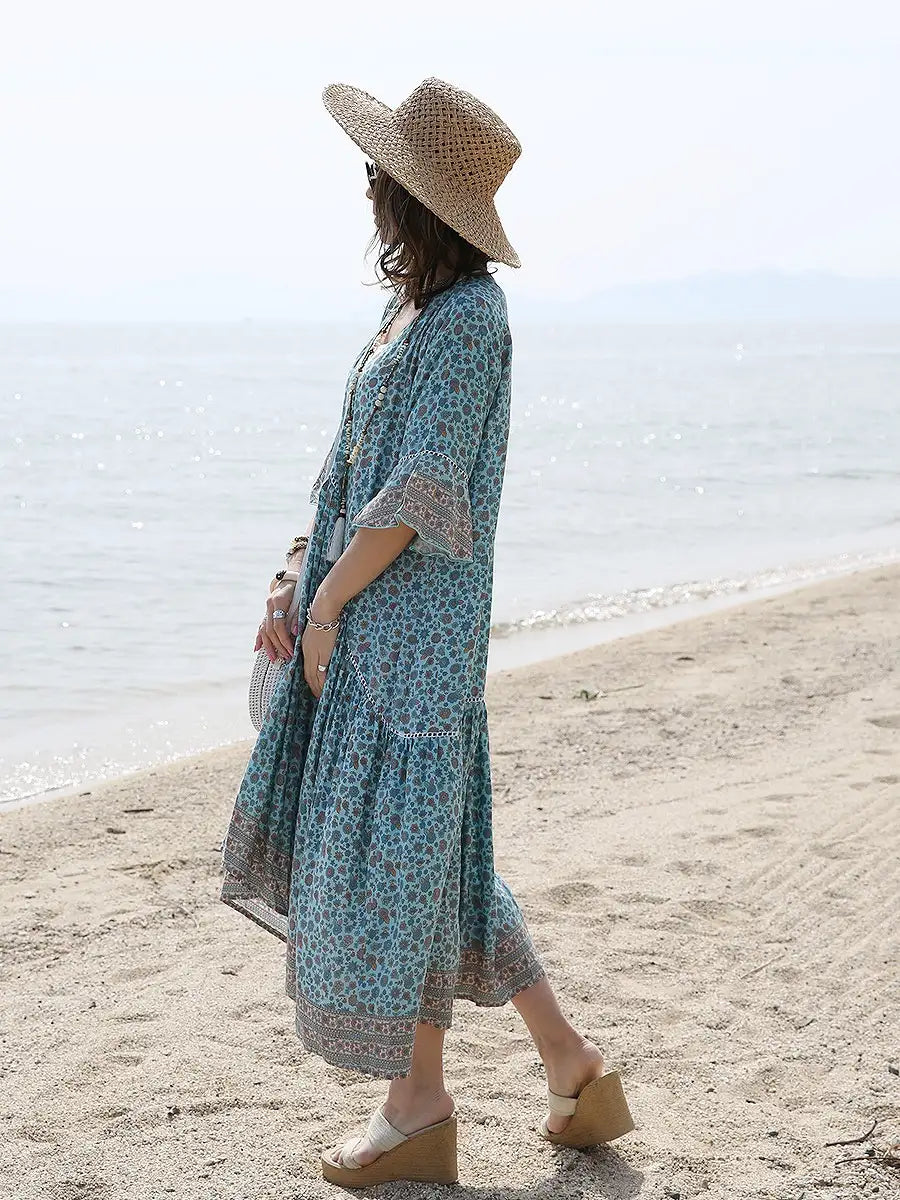 小さな花柄が全体にプリントされた大人カワイイリゾートワンピースです。