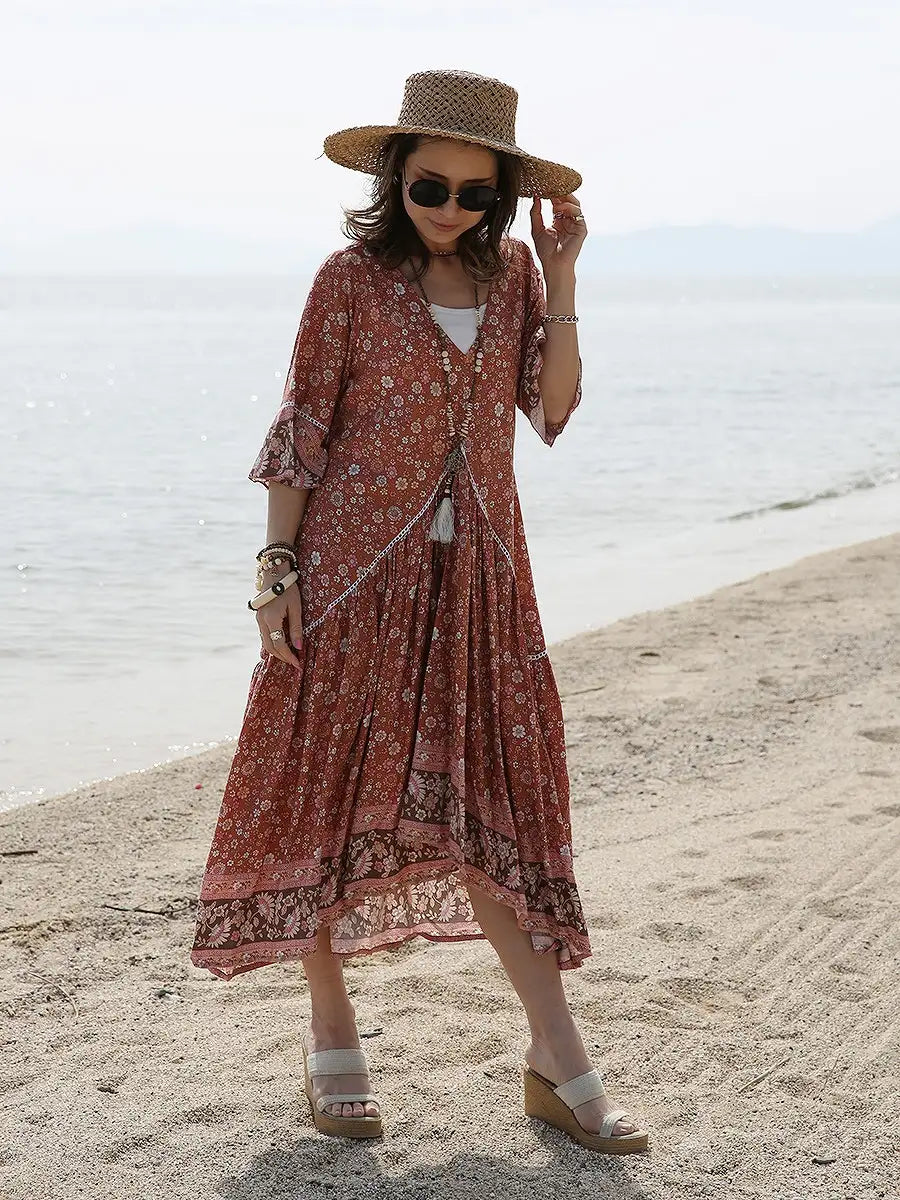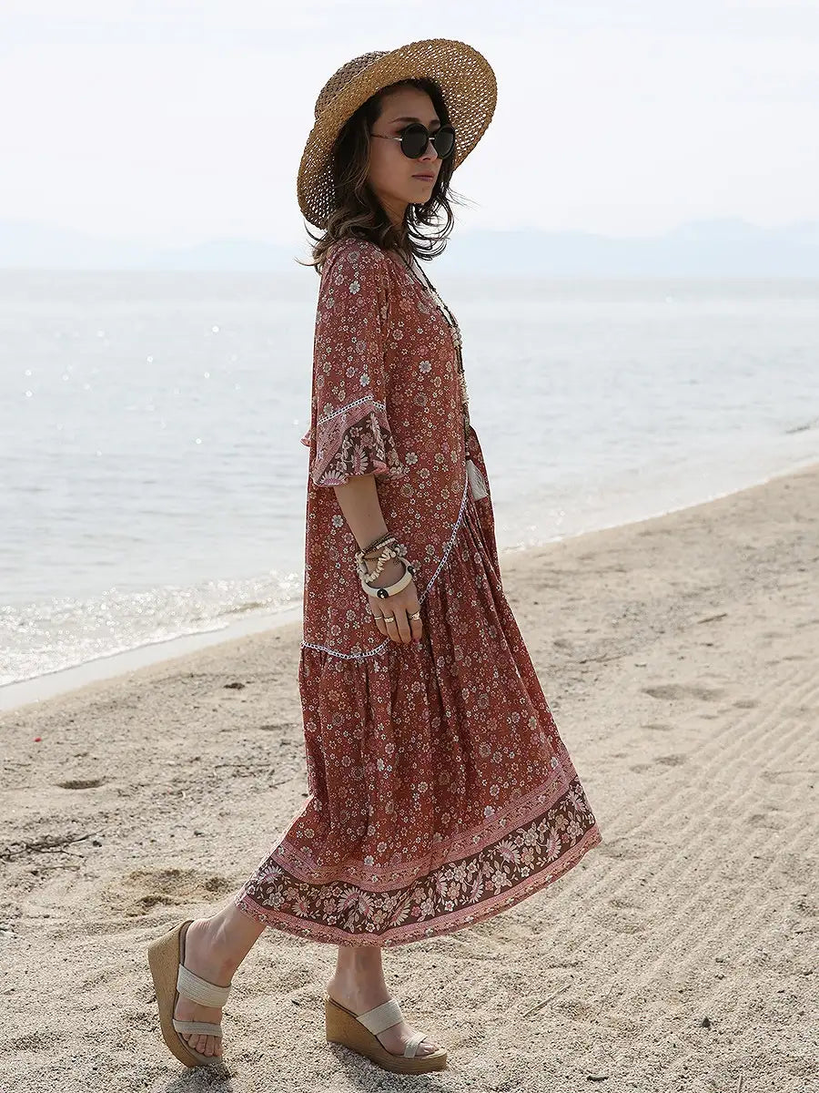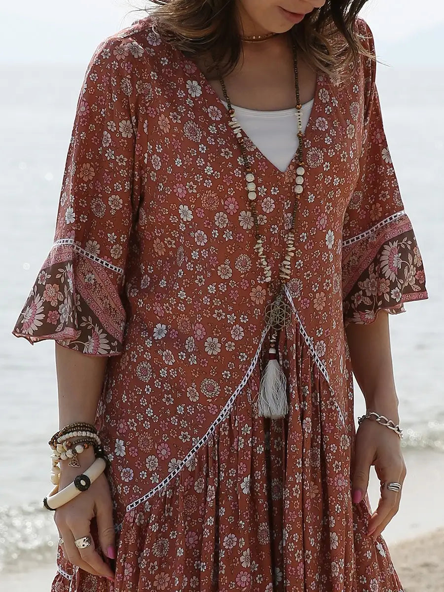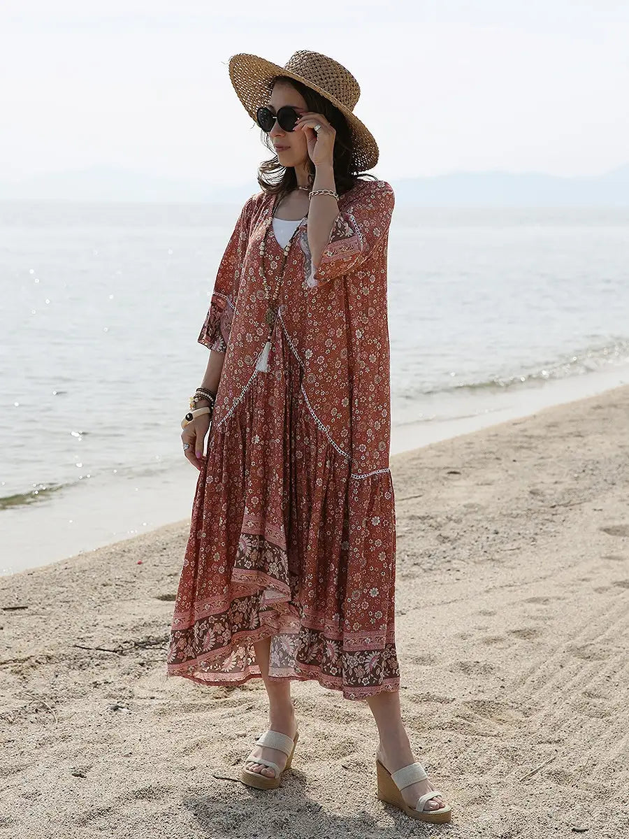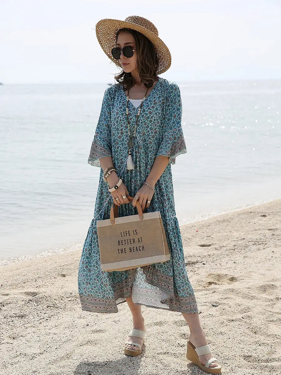 小さな花柄が全体にプリントされた大人カワイイリゾートワンピースです。