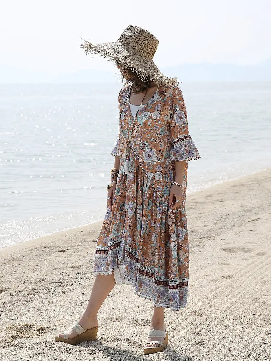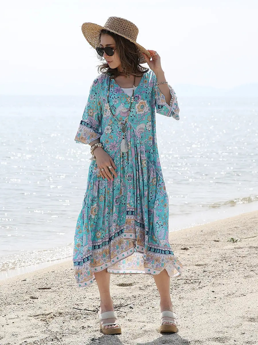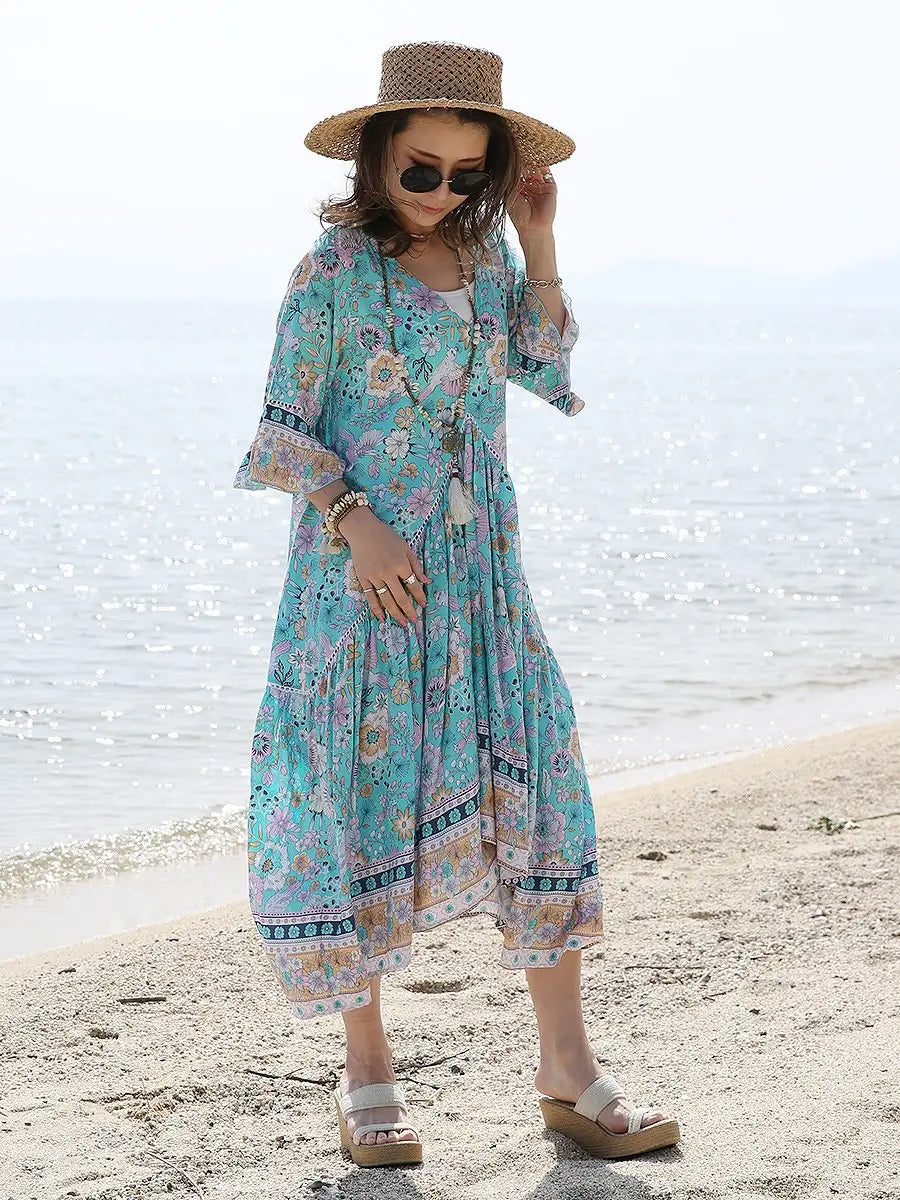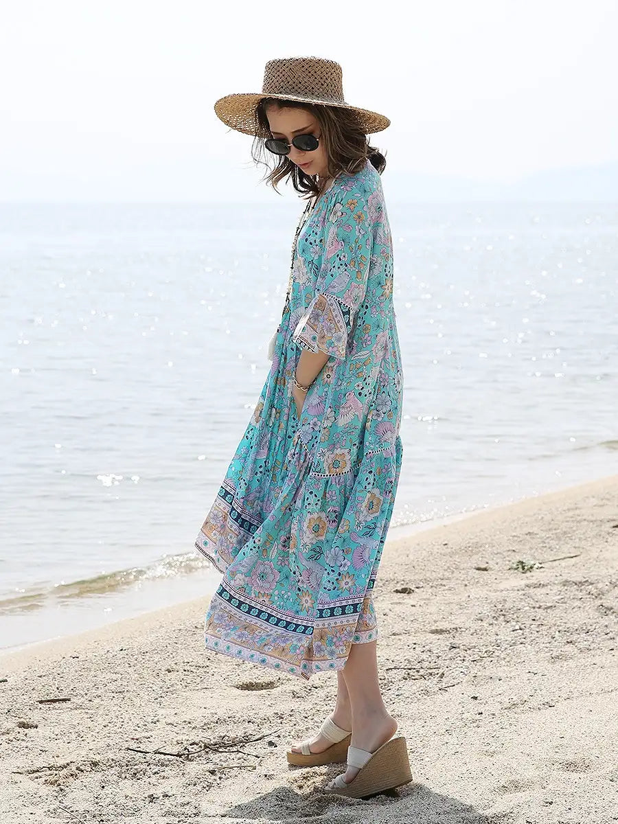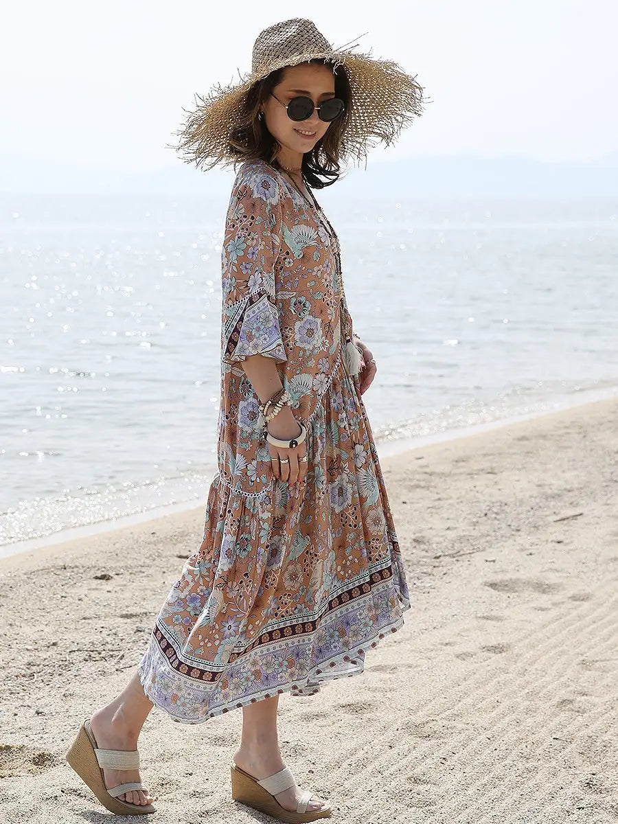 たっぷり生地を贅沢に使用したマキシワンピースは夏コーデに大活躍します。