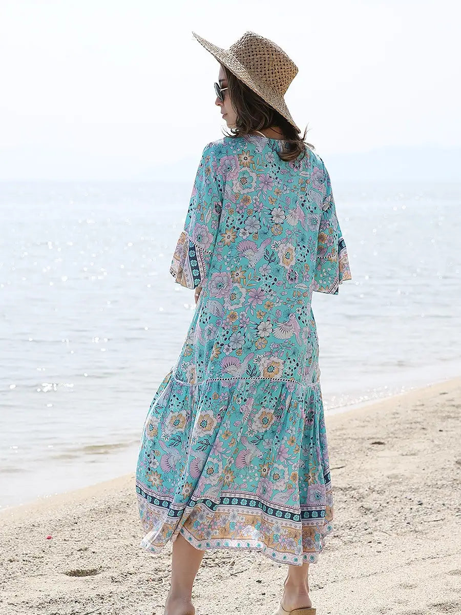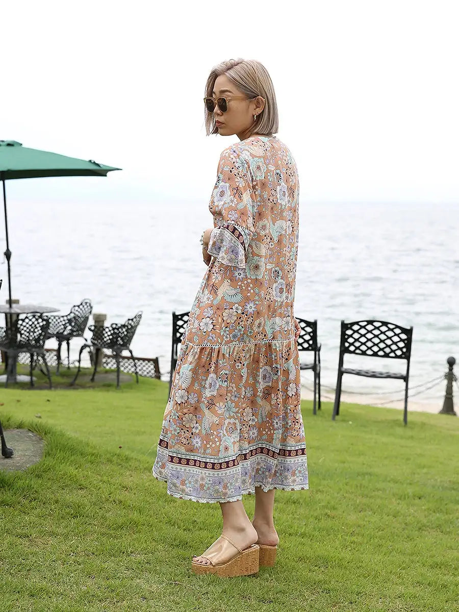 LAUT BLUE(ラウトブルー)フラワーバードマキシワンピース