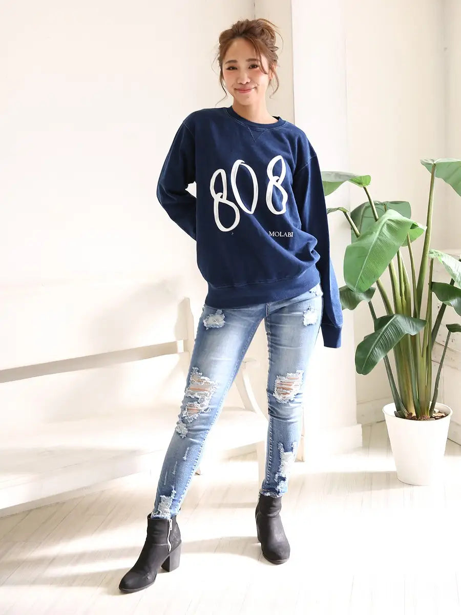 インディゴ染めでウォッシュ加工されたスウェットは雰囲気漂うお洒落なアイテムです。