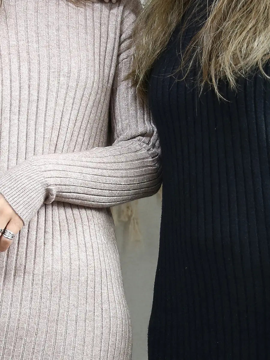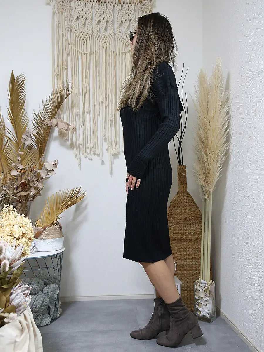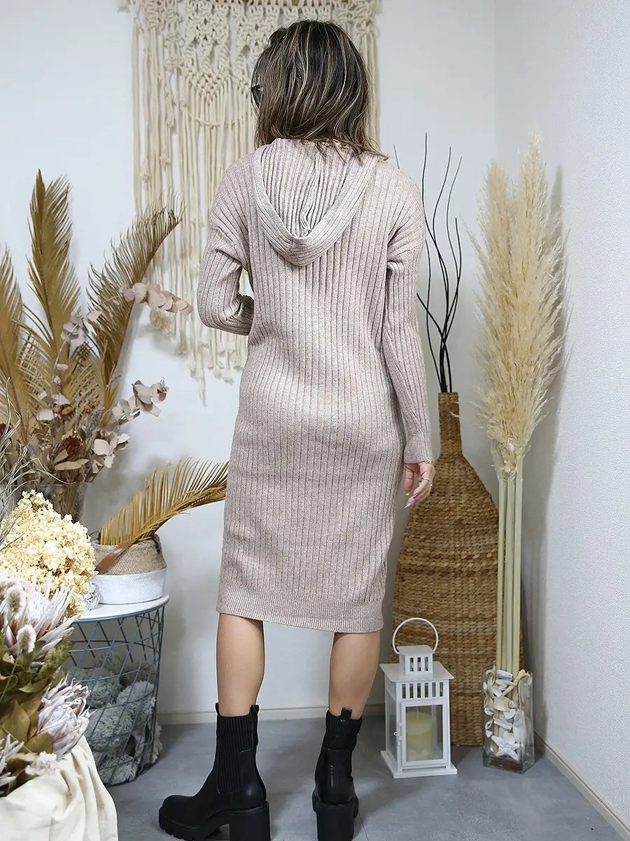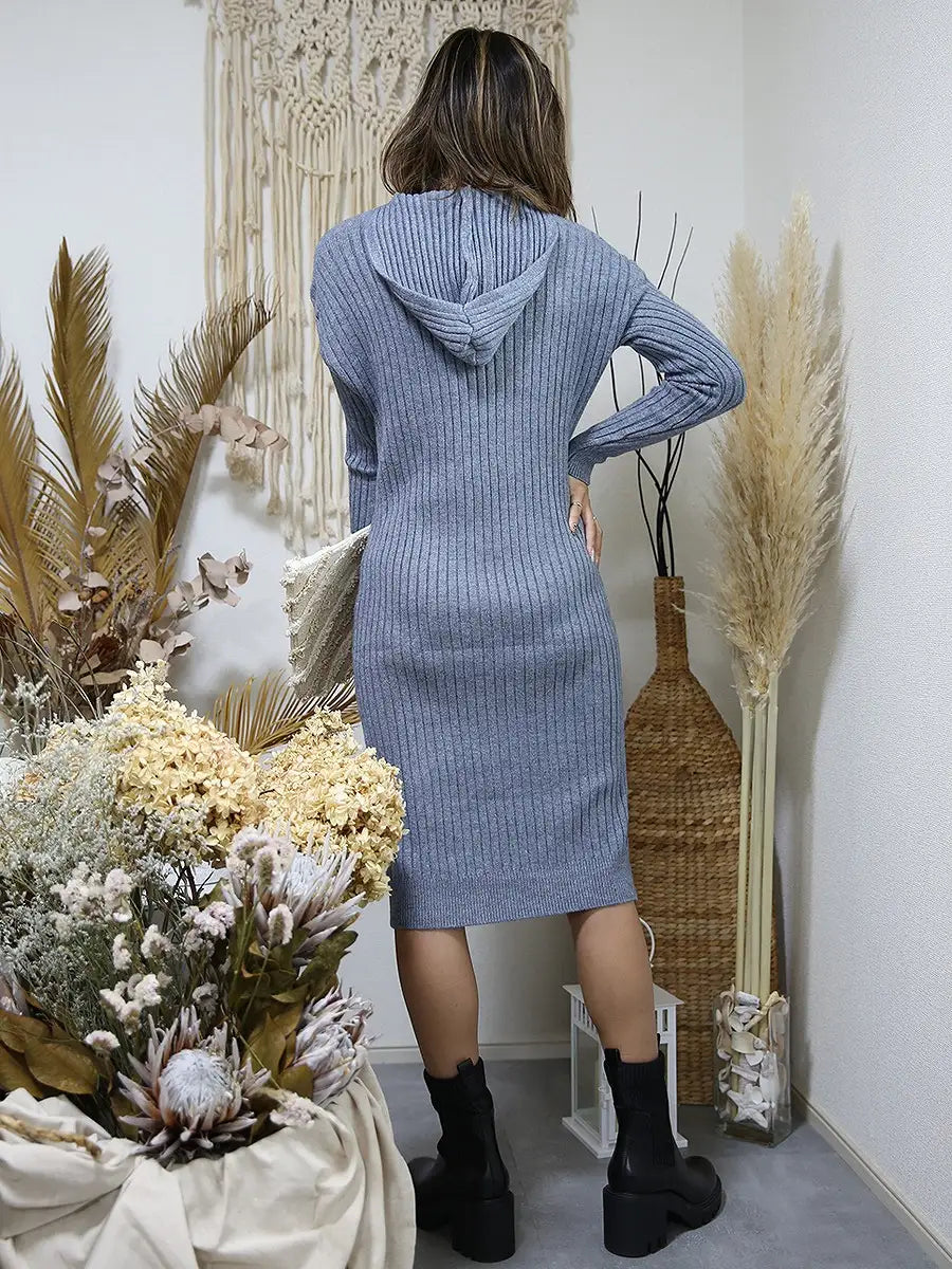 roomy by the sea(ルーミーバイザシー)フード付きタイトなリブニットワンピース