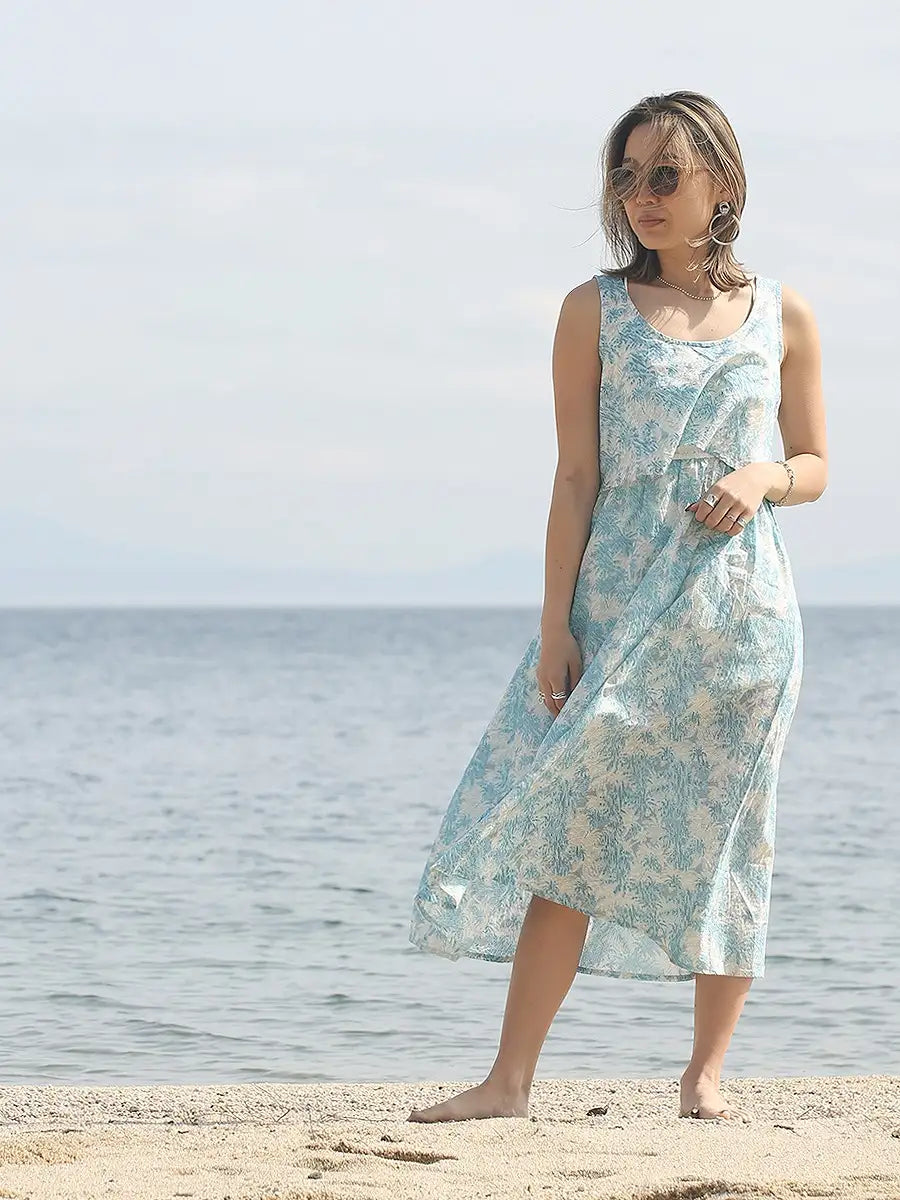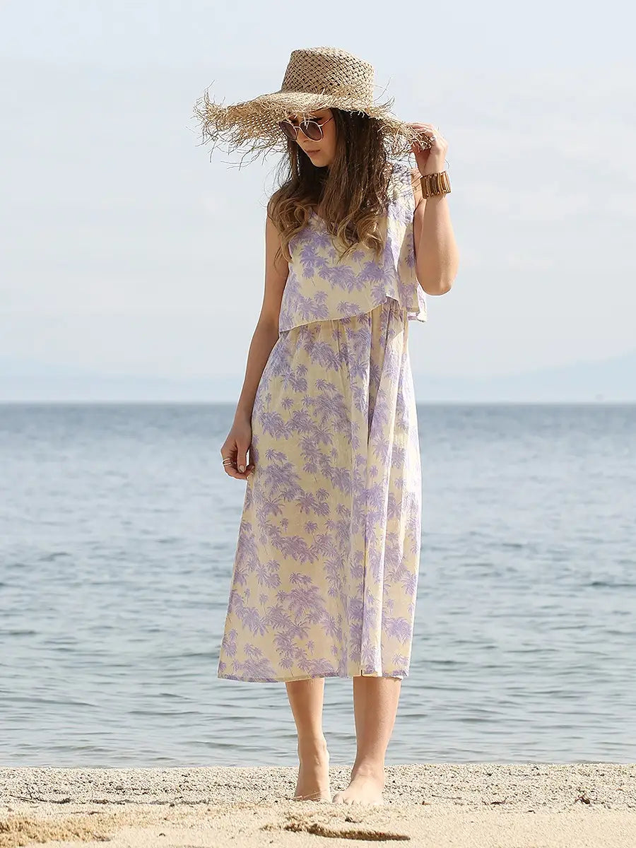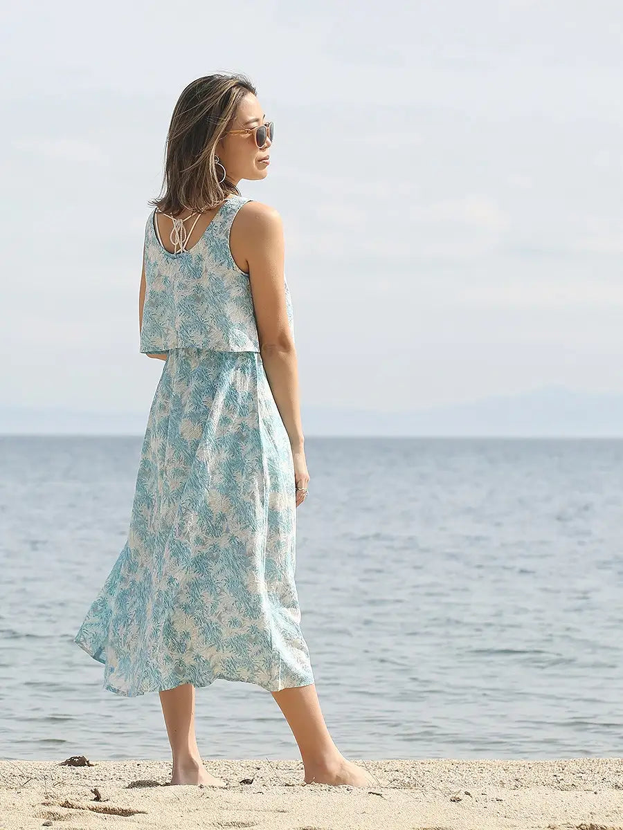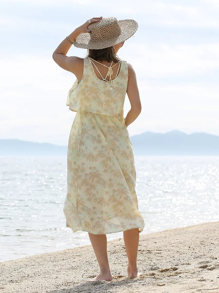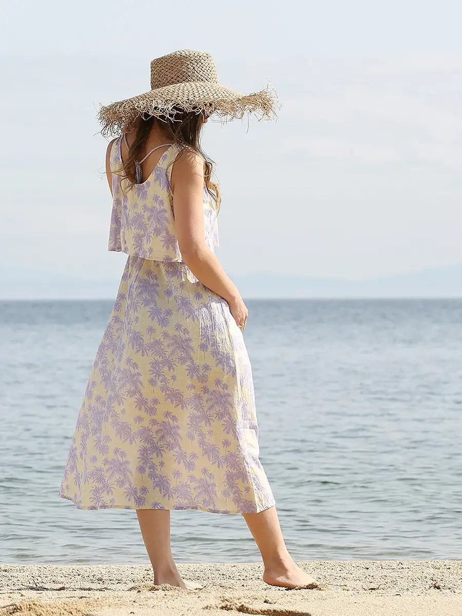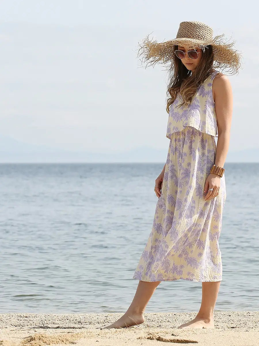 パームツリー柄をモチーフにした総柄デザインのリゾートワンピースです。