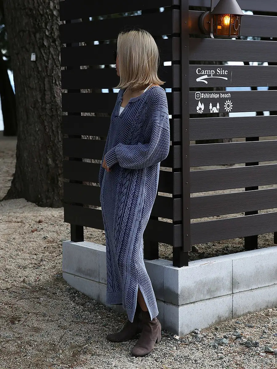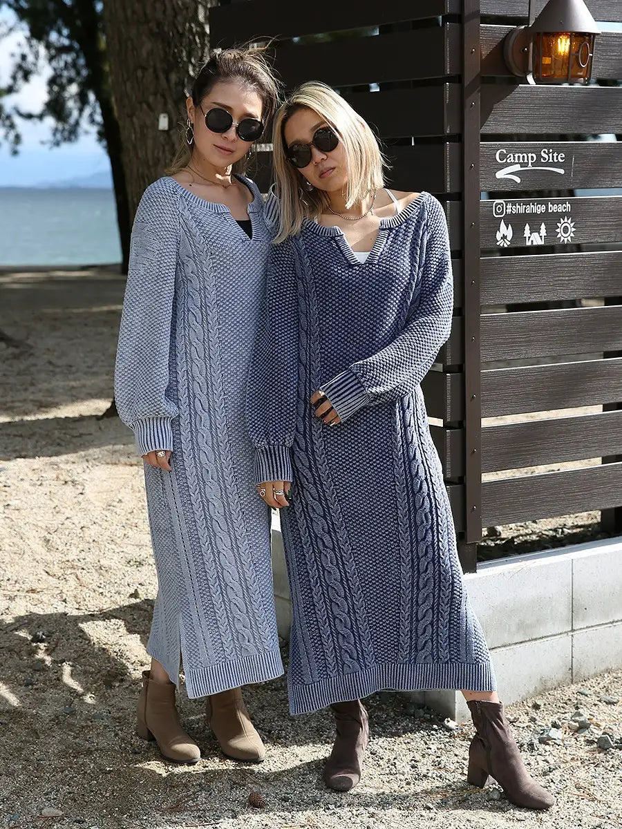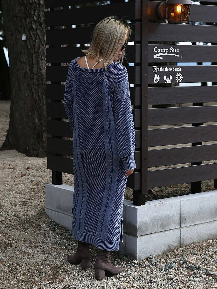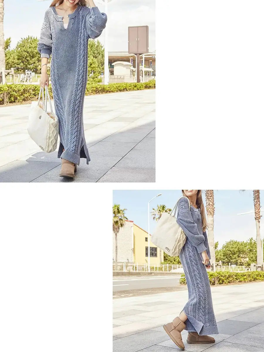 ゆるシルエットの落ち感のあるニットロングワンピース。