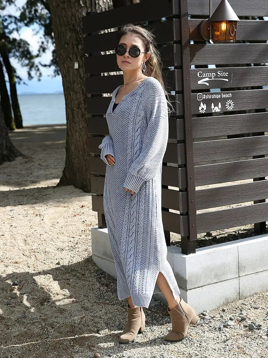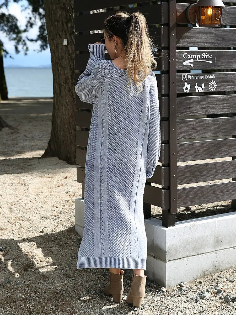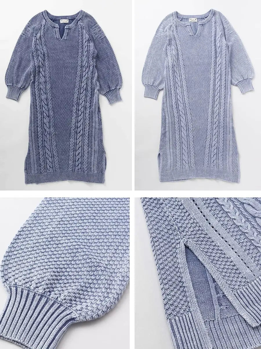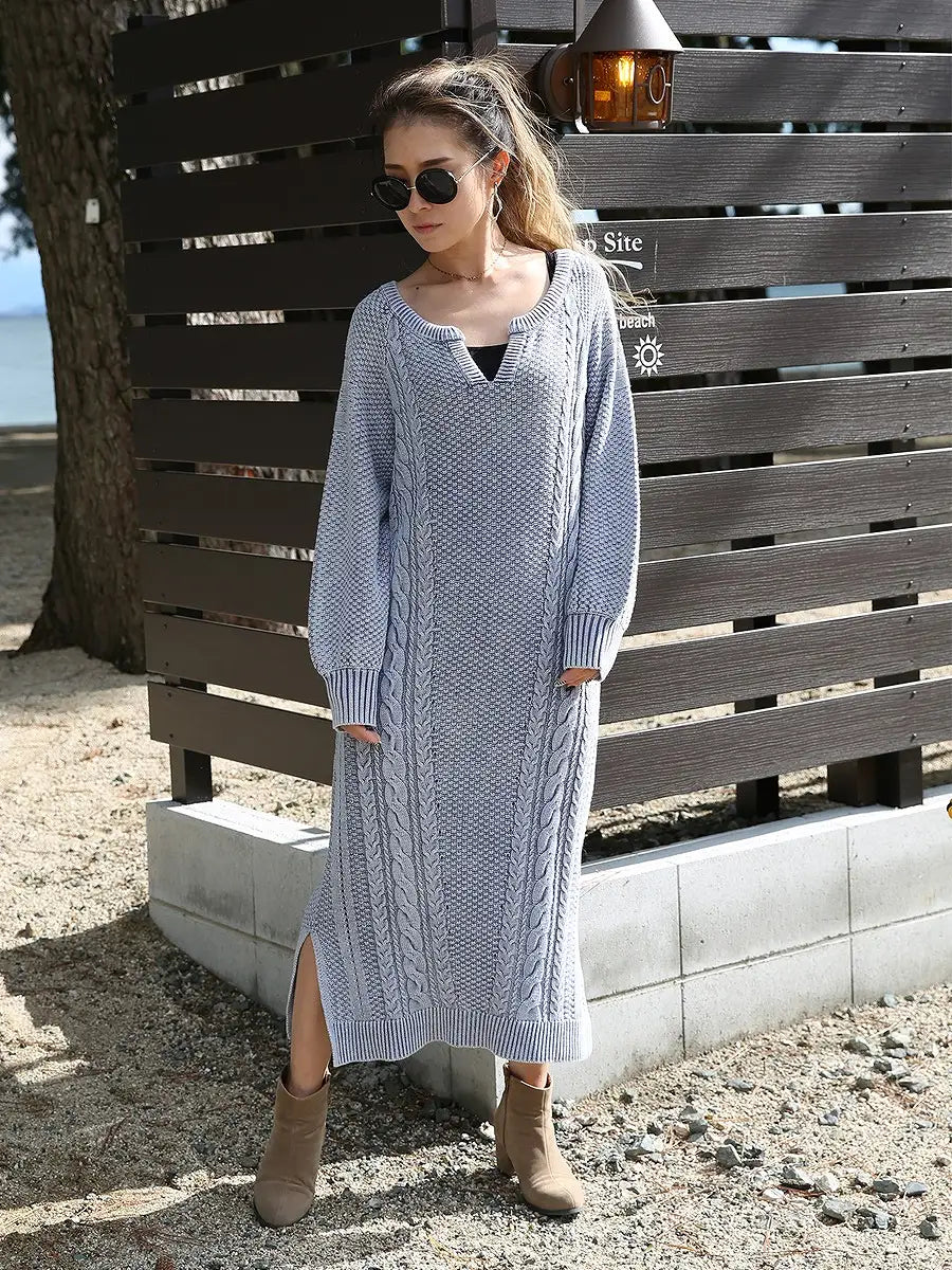 ゆるシルエットの落ち感のあるニットロングワンピース。