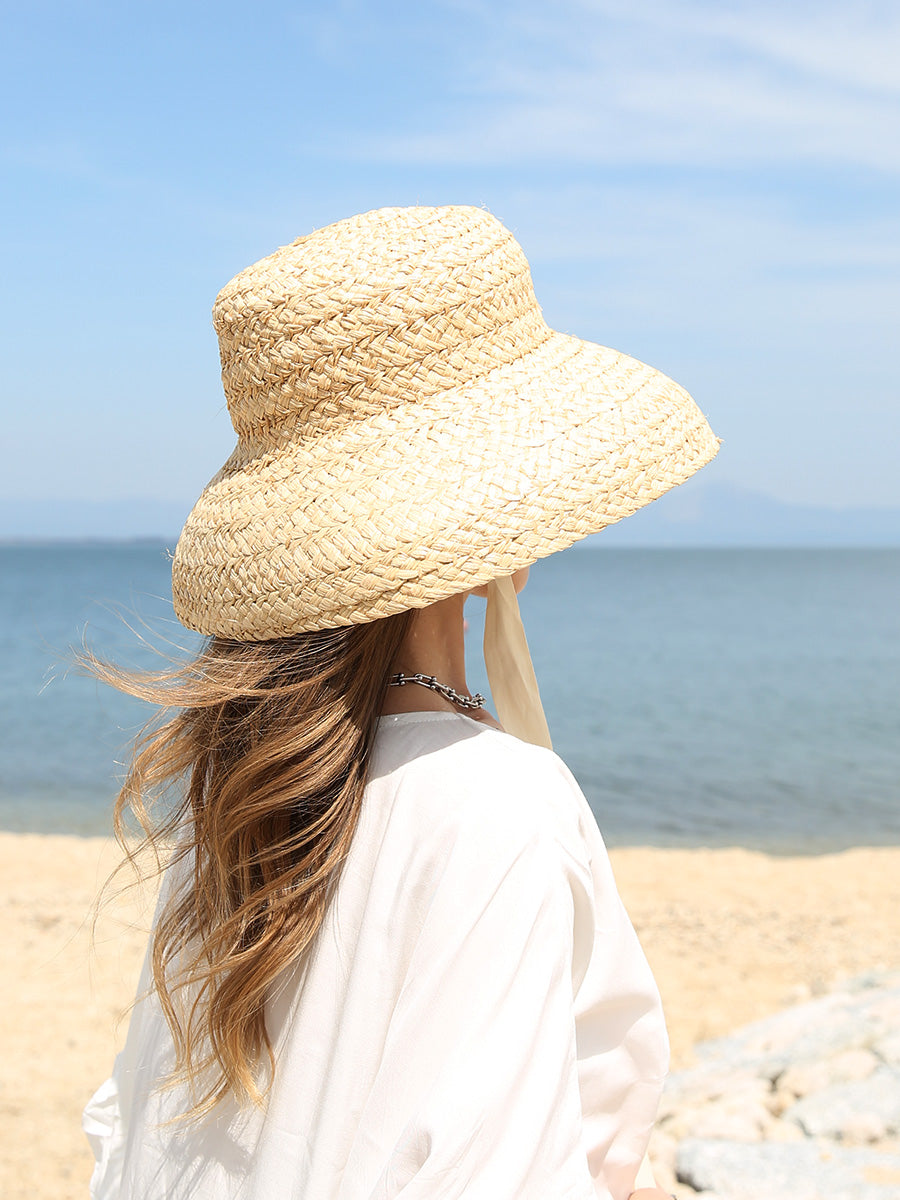 つば広ストローハット/フラット,ラウンド,パナマ