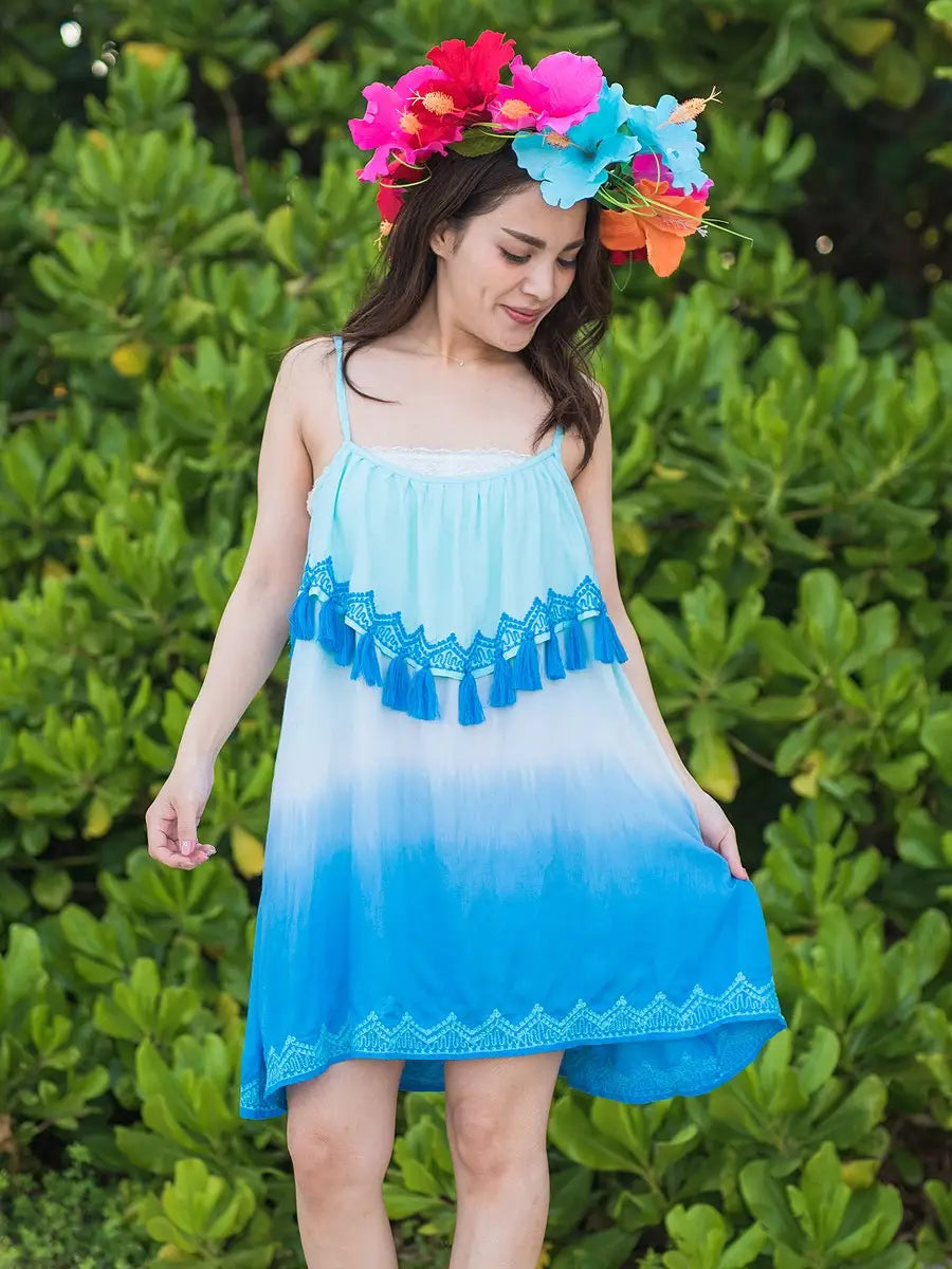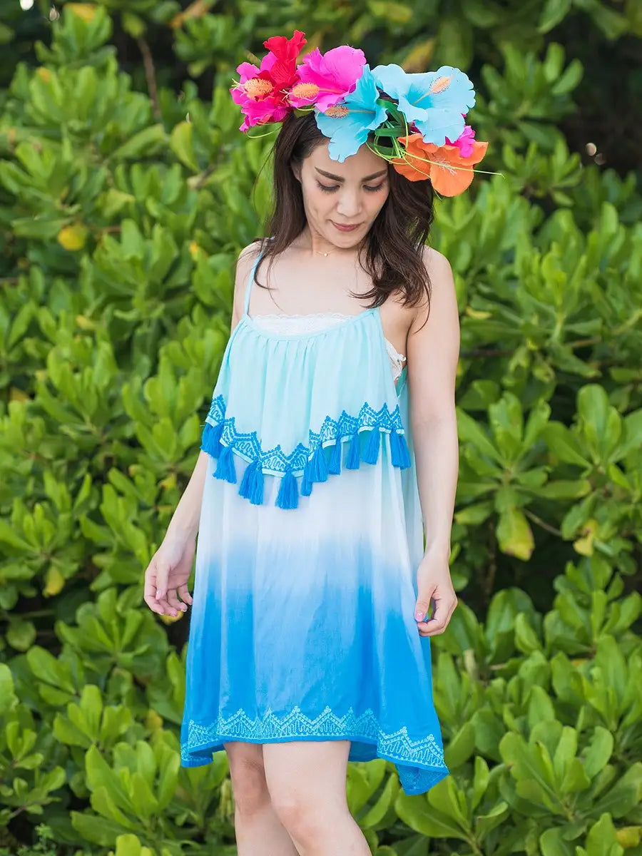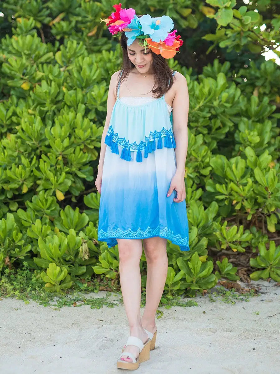 綺麗なブルーグラデーションのショート丈ワンピースです。