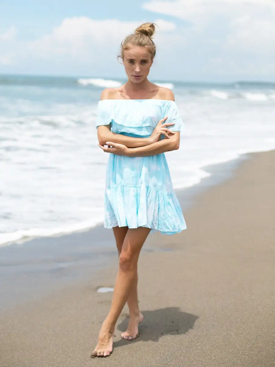 LAUT BLUE(ラウトブルー)サブリナショートワンピース/ブルー/ピンク