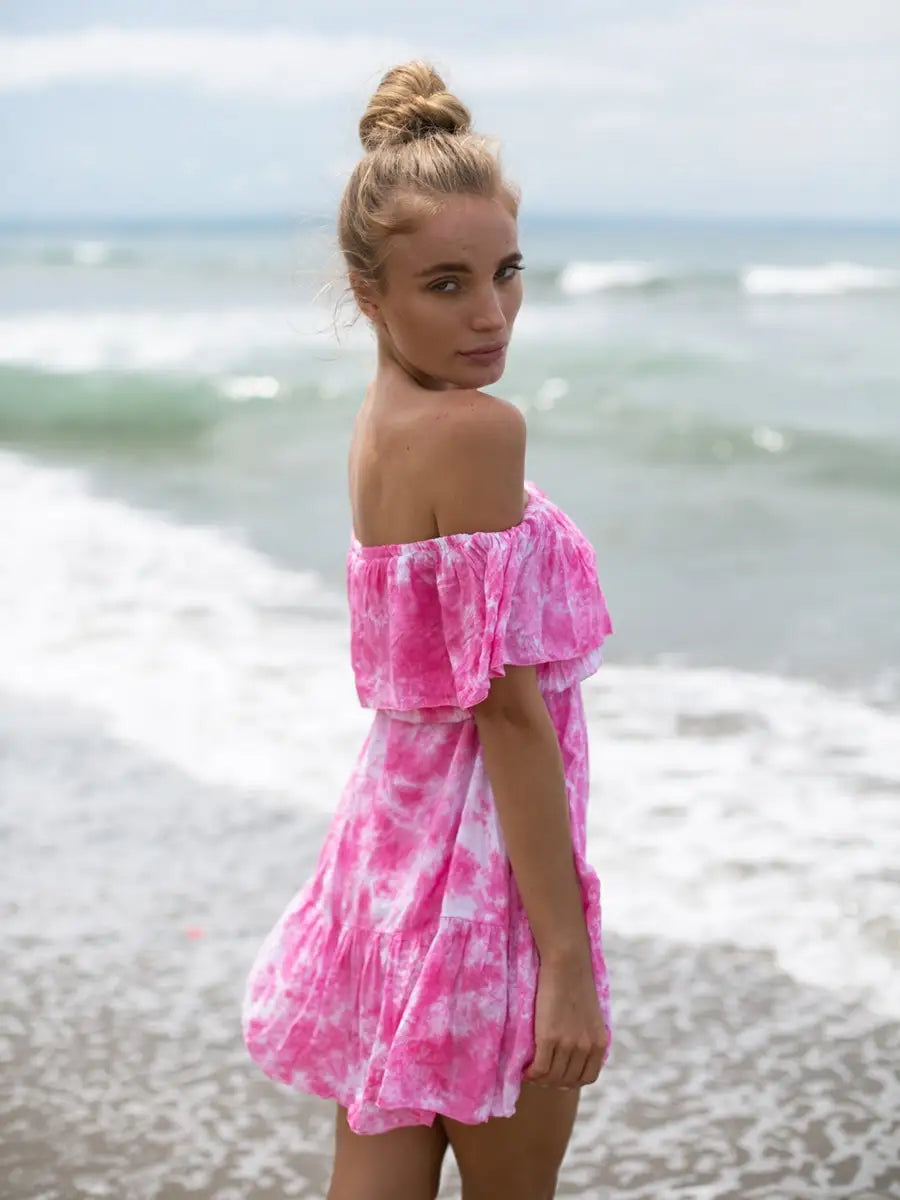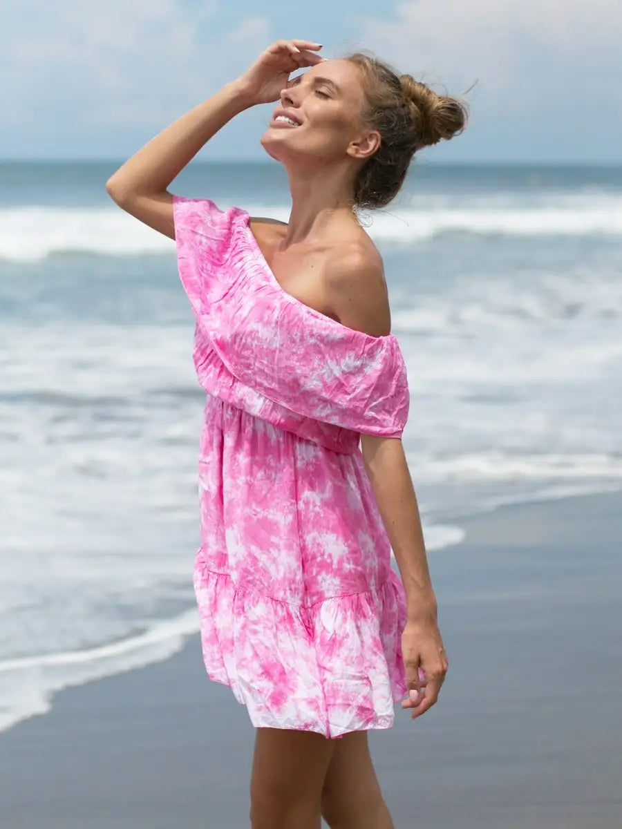 綺麗なタイダイ柄の『大人カワイイ』ショートワンピースです。