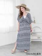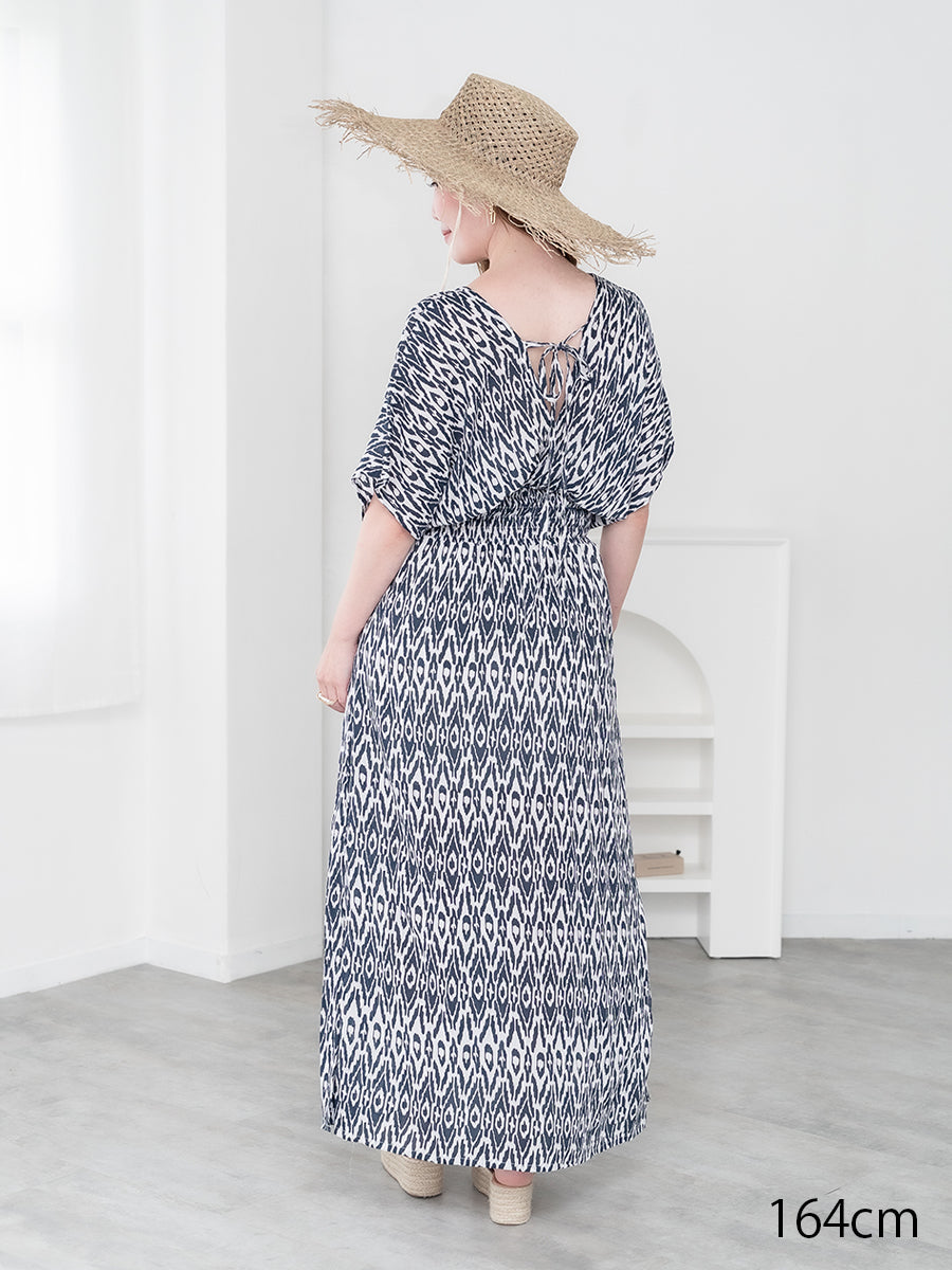 サラッとした質感のバティック柄Vネックマキシワンピースです。