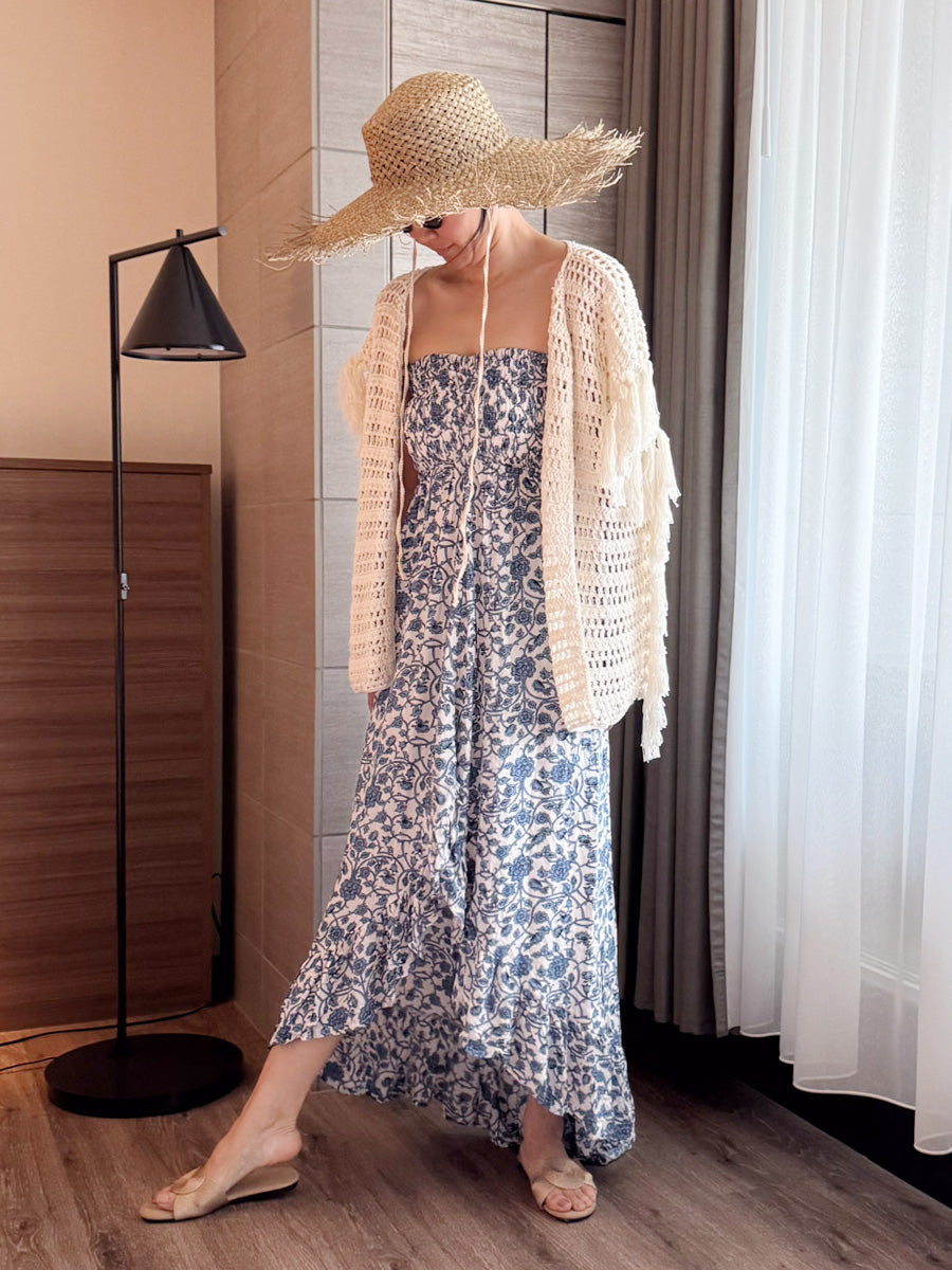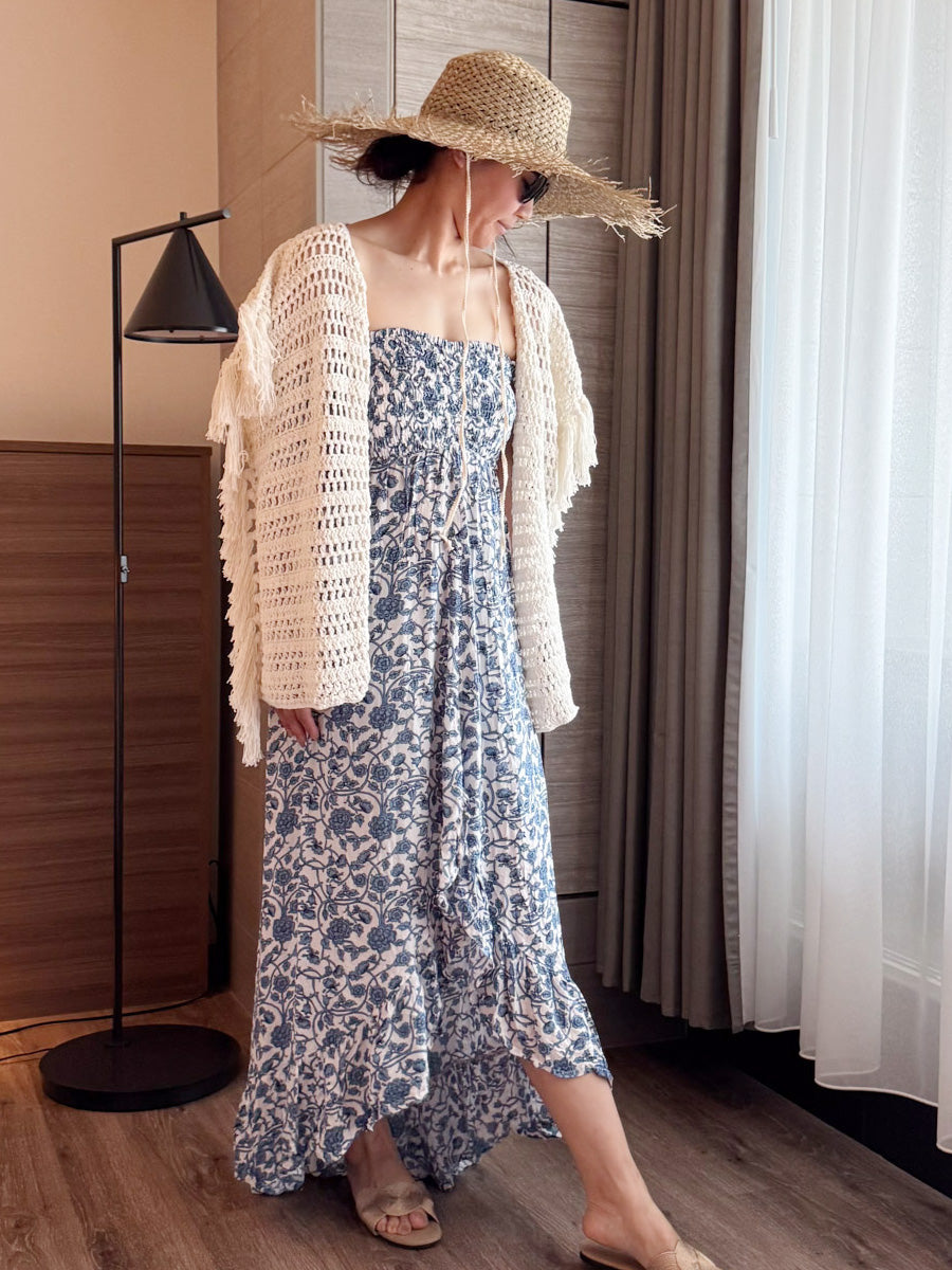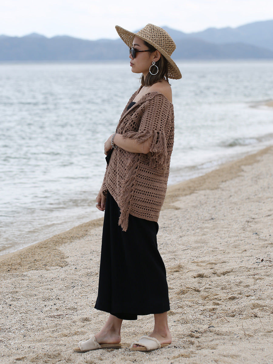 ビーチ・リゾートシーンで水着の上にサラッとカバーアップとしてのコーデがおすすめです。
