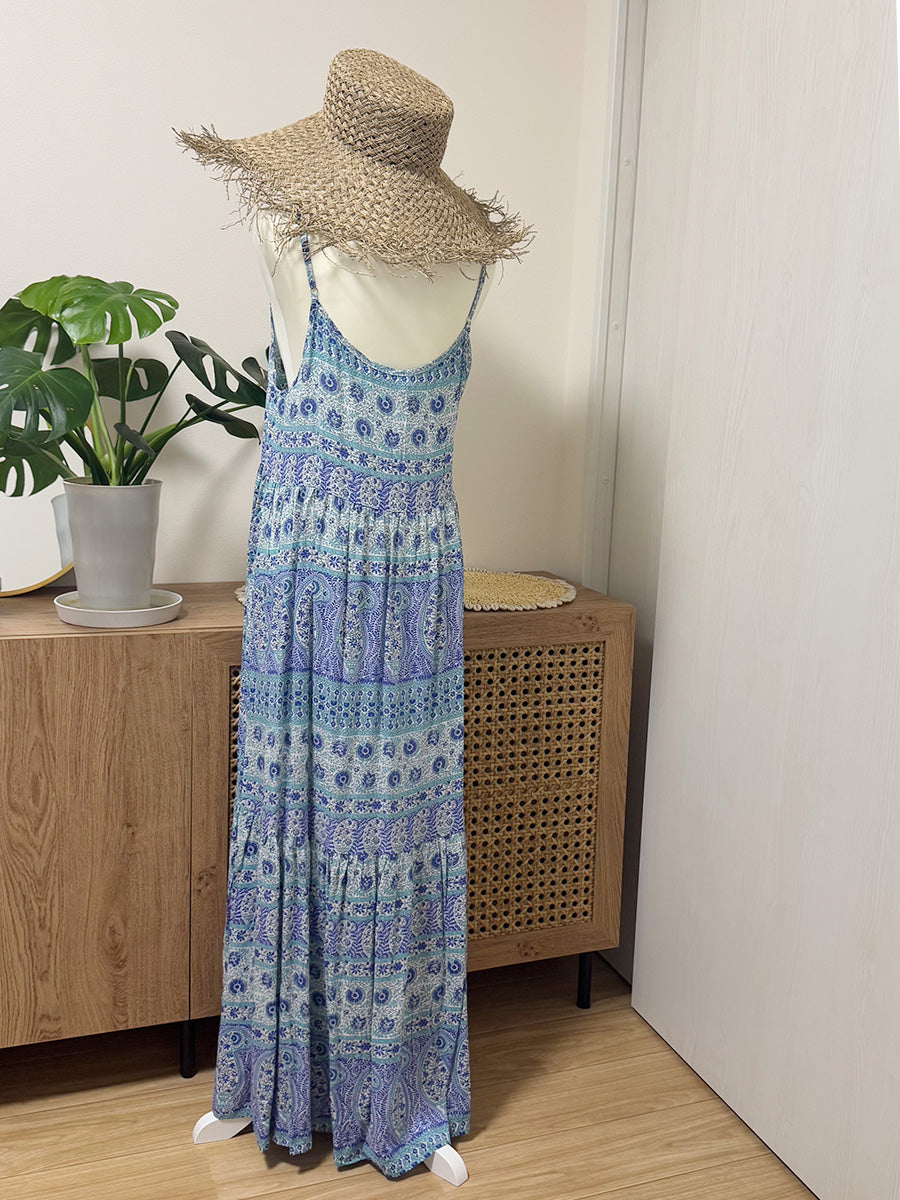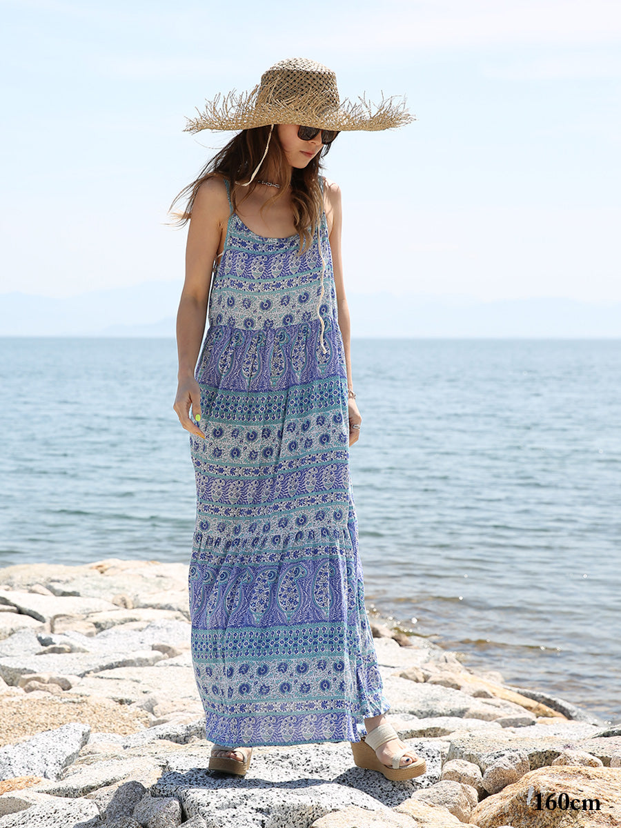 大人のリゾートスタイルが楽しめるペイズリー柄マキシワンピースです。