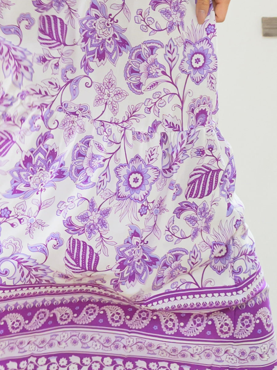LAUT BLUE(ラウトブルー)花柄カシュクールラップマキシワンピース/ターコイズ,パープル