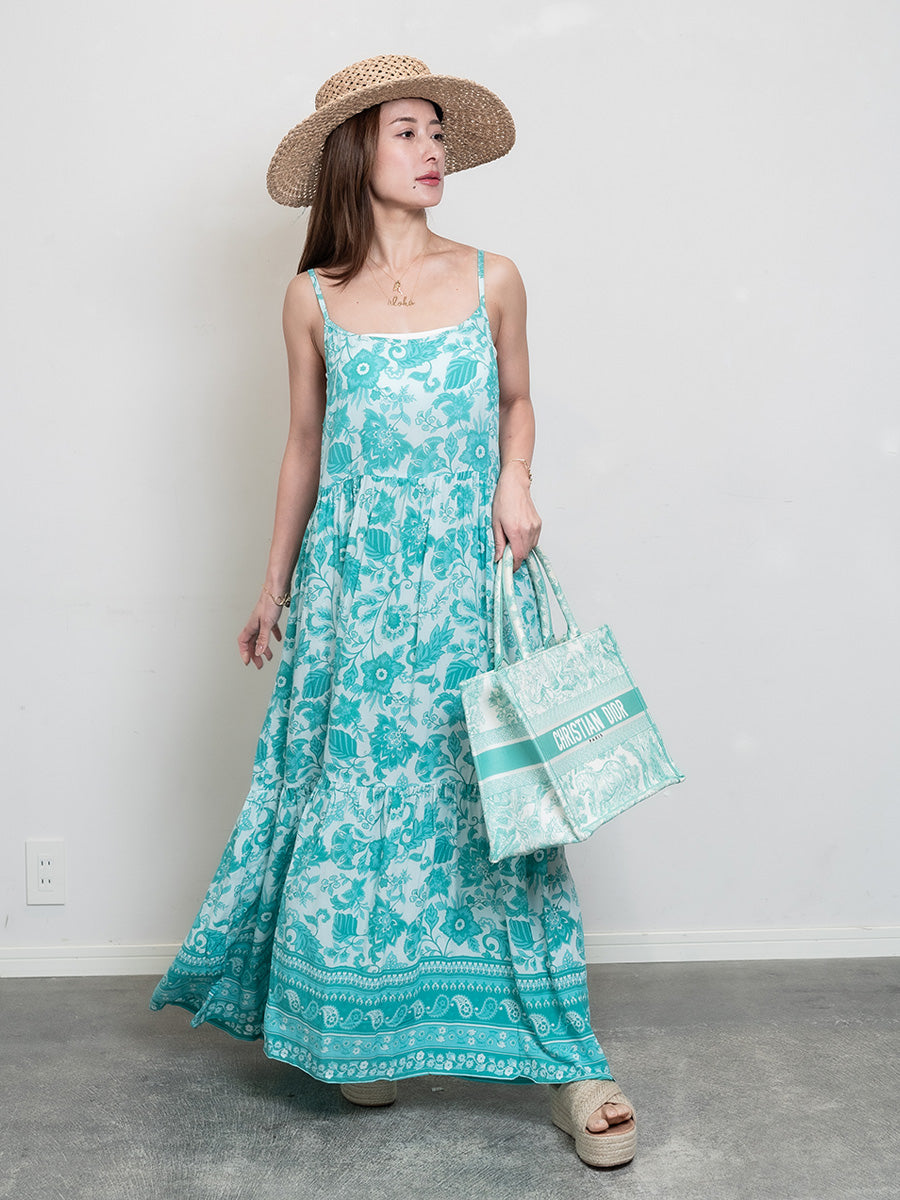 LAUT BLUE(ラウトブルー)キャミソールマキシワンピース/花柄ターコイズ