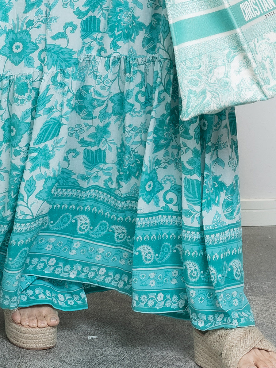 大人のリゾートスタイルが楽しめるターコイズ花柄マキシワンピースです。