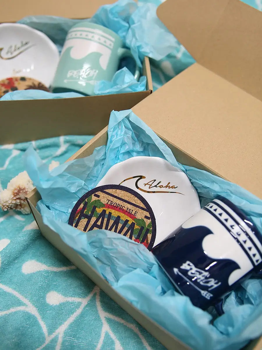 【ギフトボックス】BEACHマグ/シェルプレート/コースター(ボックスラッピングでお届け)