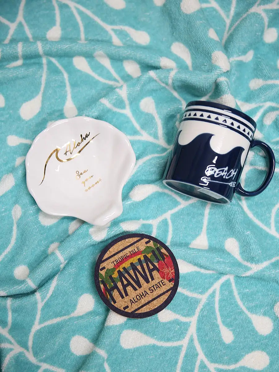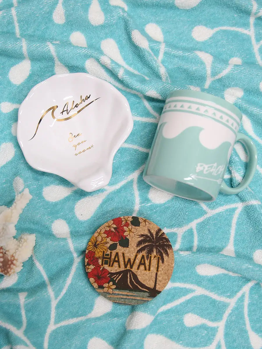 BEACHウェーブマグ、シェルプレート、コースターの3点セットになります。
