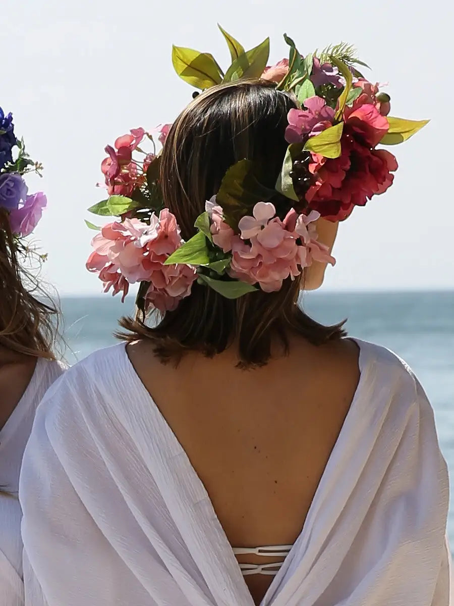 大きい造花を使用した、目を惹く可愛さの花冠です。