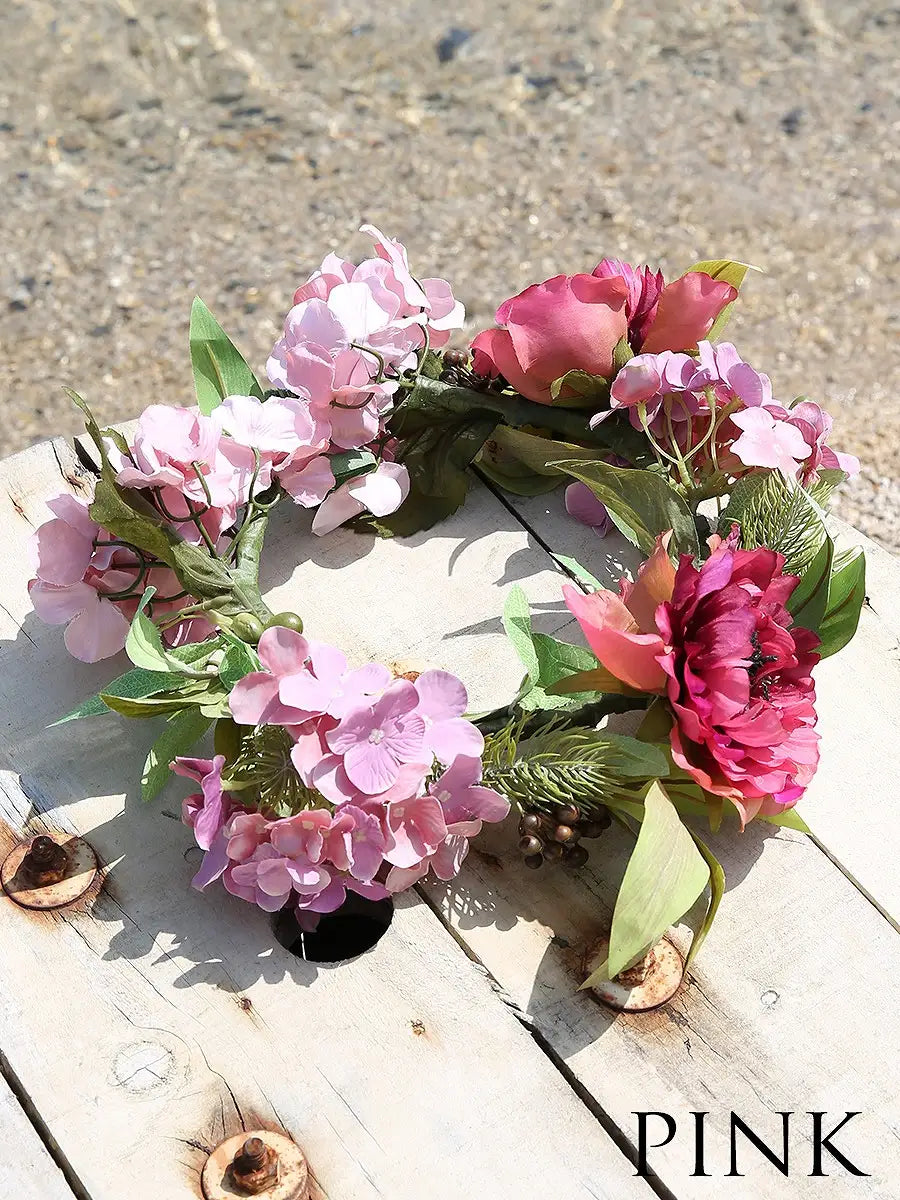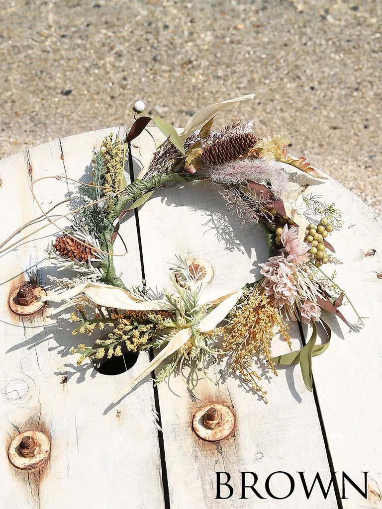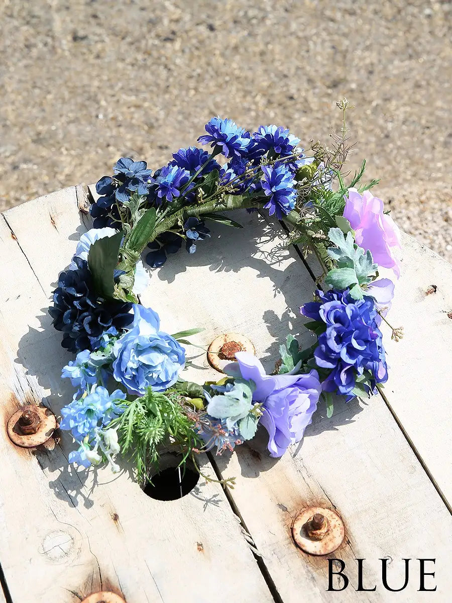 丁寧にカラー配置やお花の選定がされたお洒落なハンドメイド花冠になります。