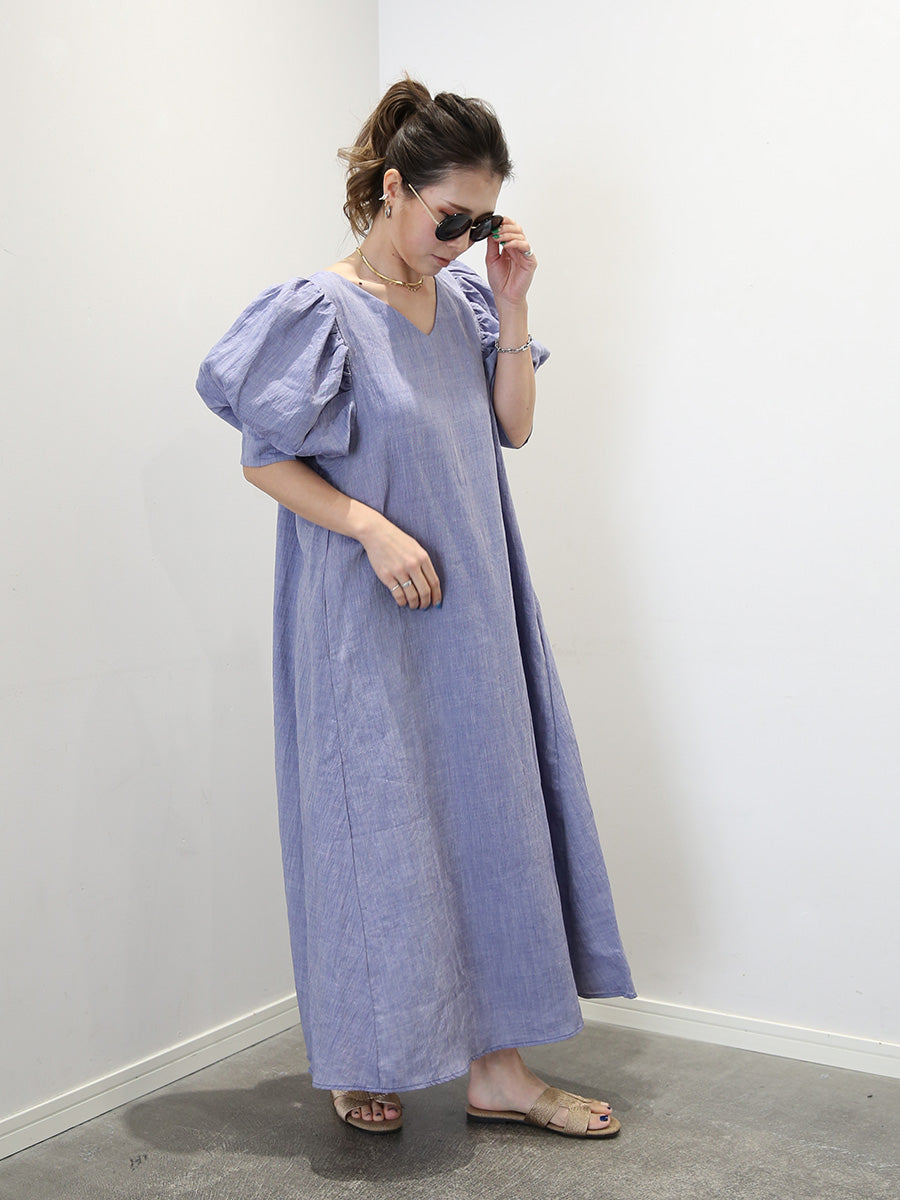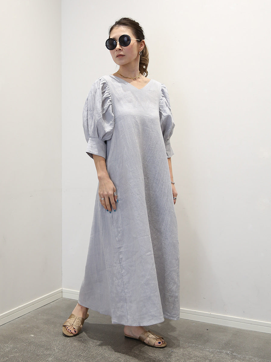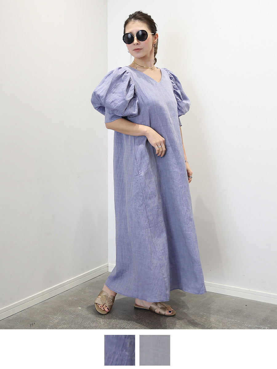 MOLABI(モラビ)近江ちぢみリネンバルーンスリーブマキシワンピース