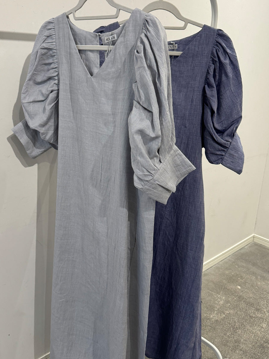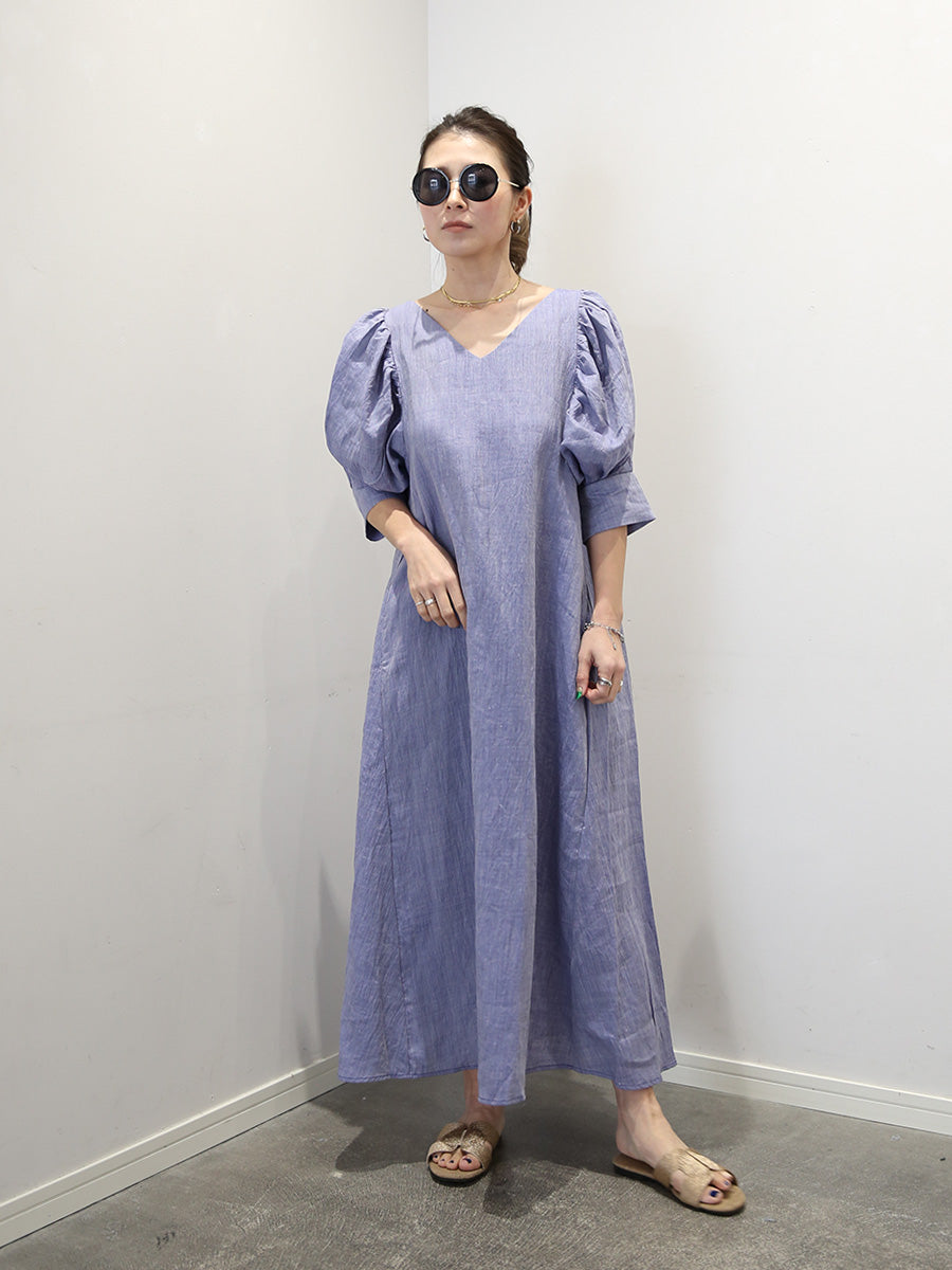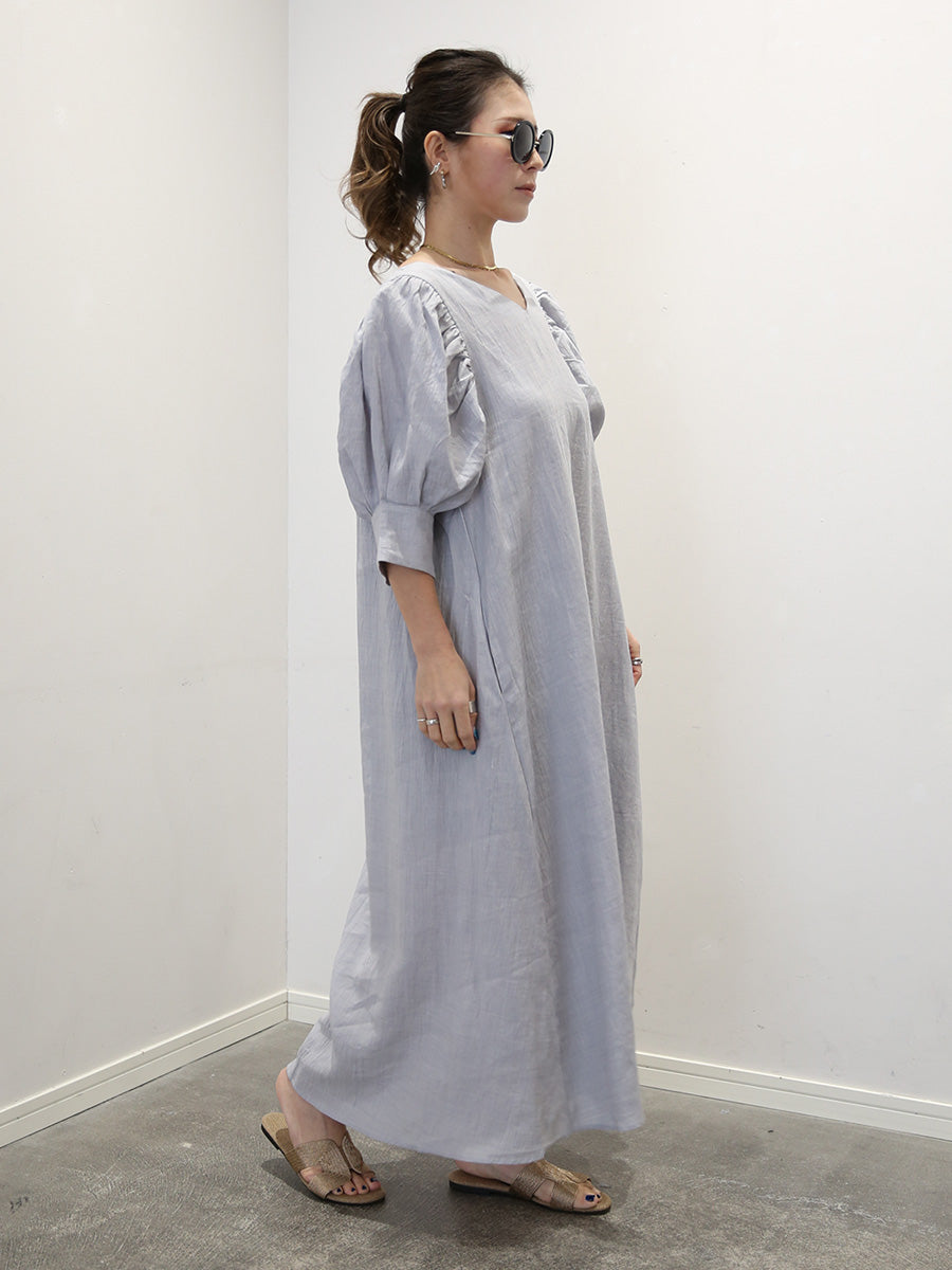 MOLABI(モラビ)近江ちぢみリネンバルーンスリーブマキシワンピース