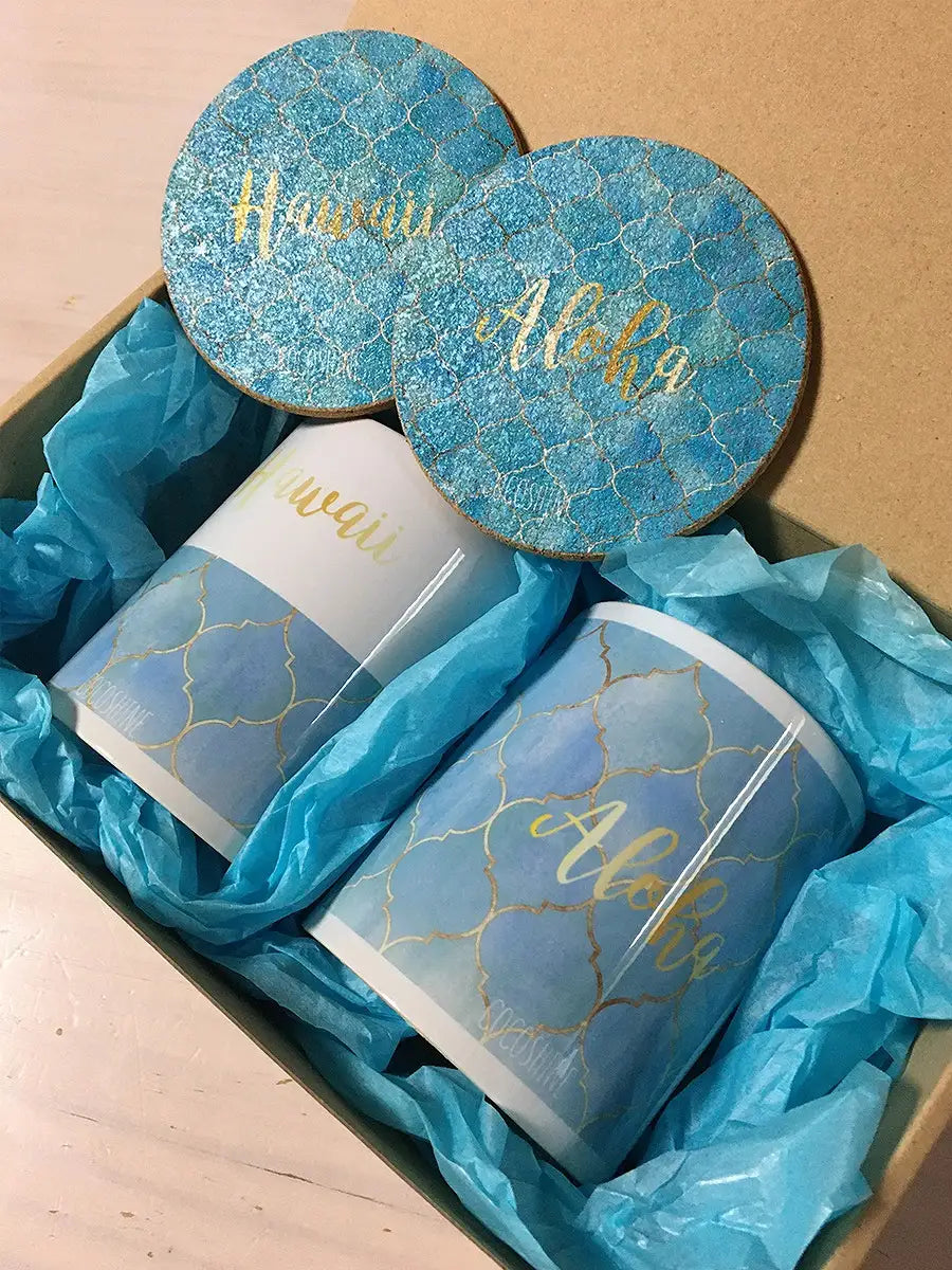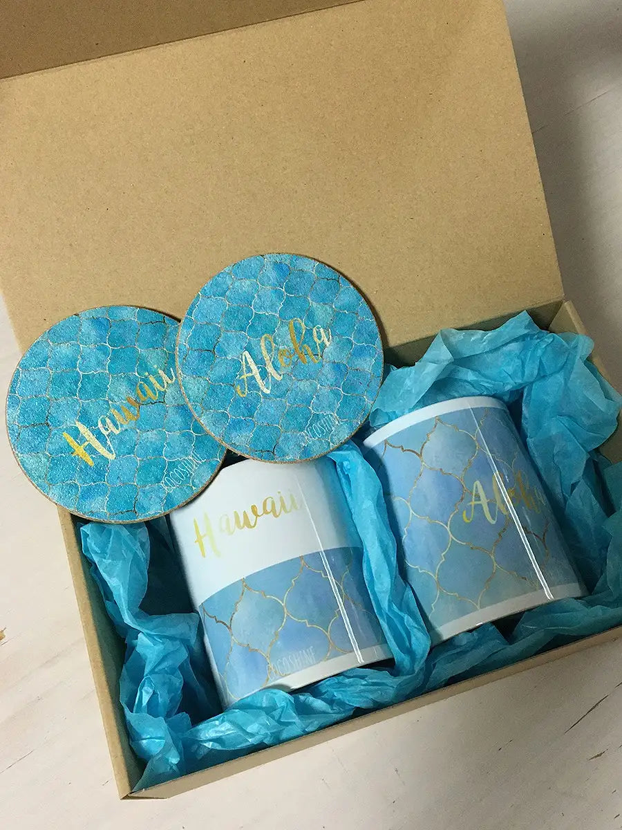 COCOSHINE(ココシャイン)モロッカン柄のマグカップとコルクコースターのギフトセットです。