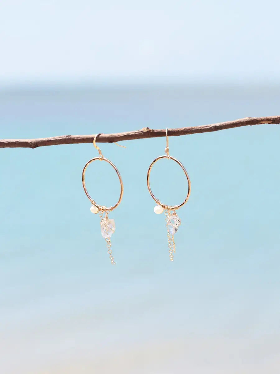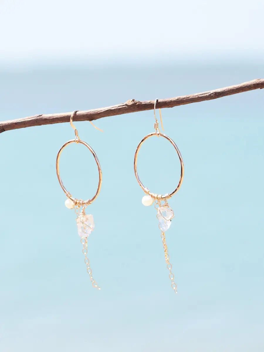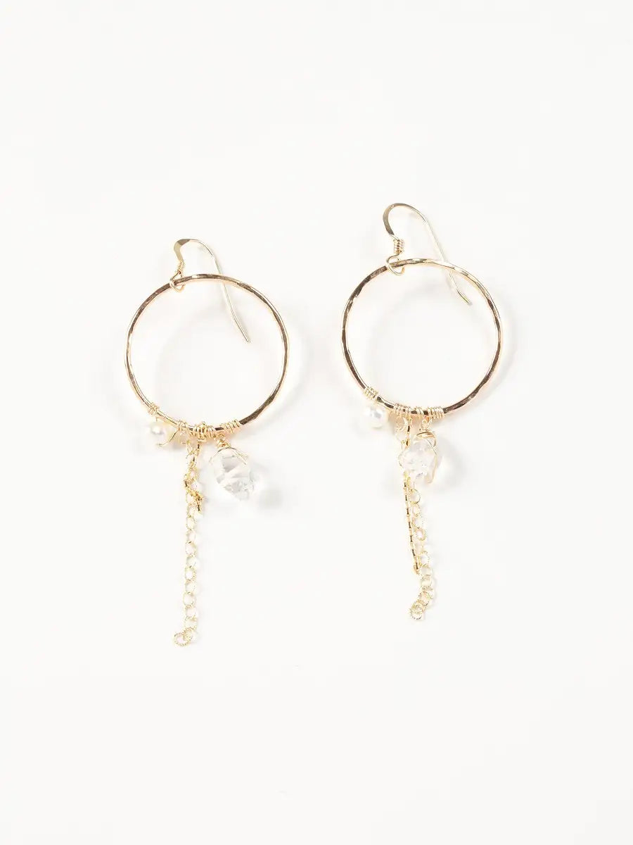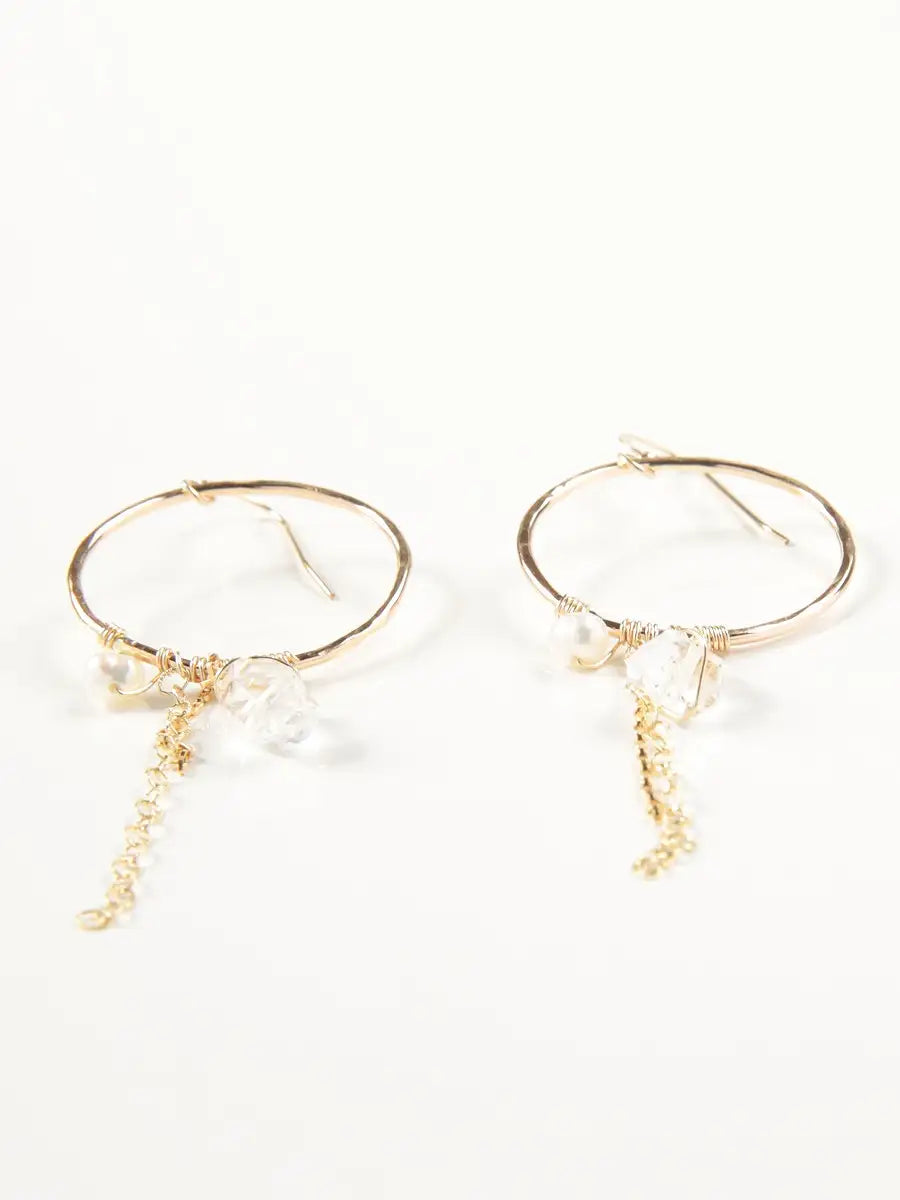 小さ目のフープにハーキマーダイヤモンドとフレッシュウォーターパールがあしらわれたゴージャスなデザイン!