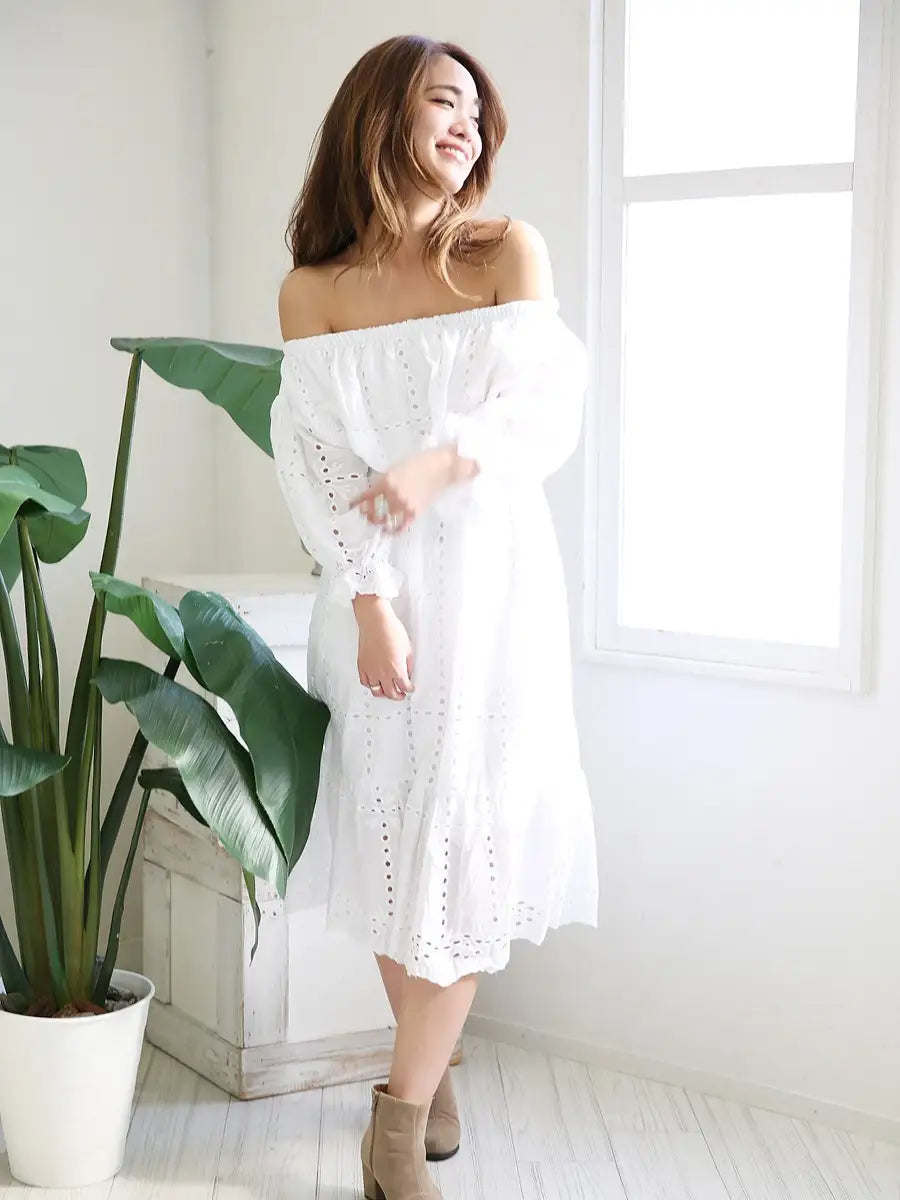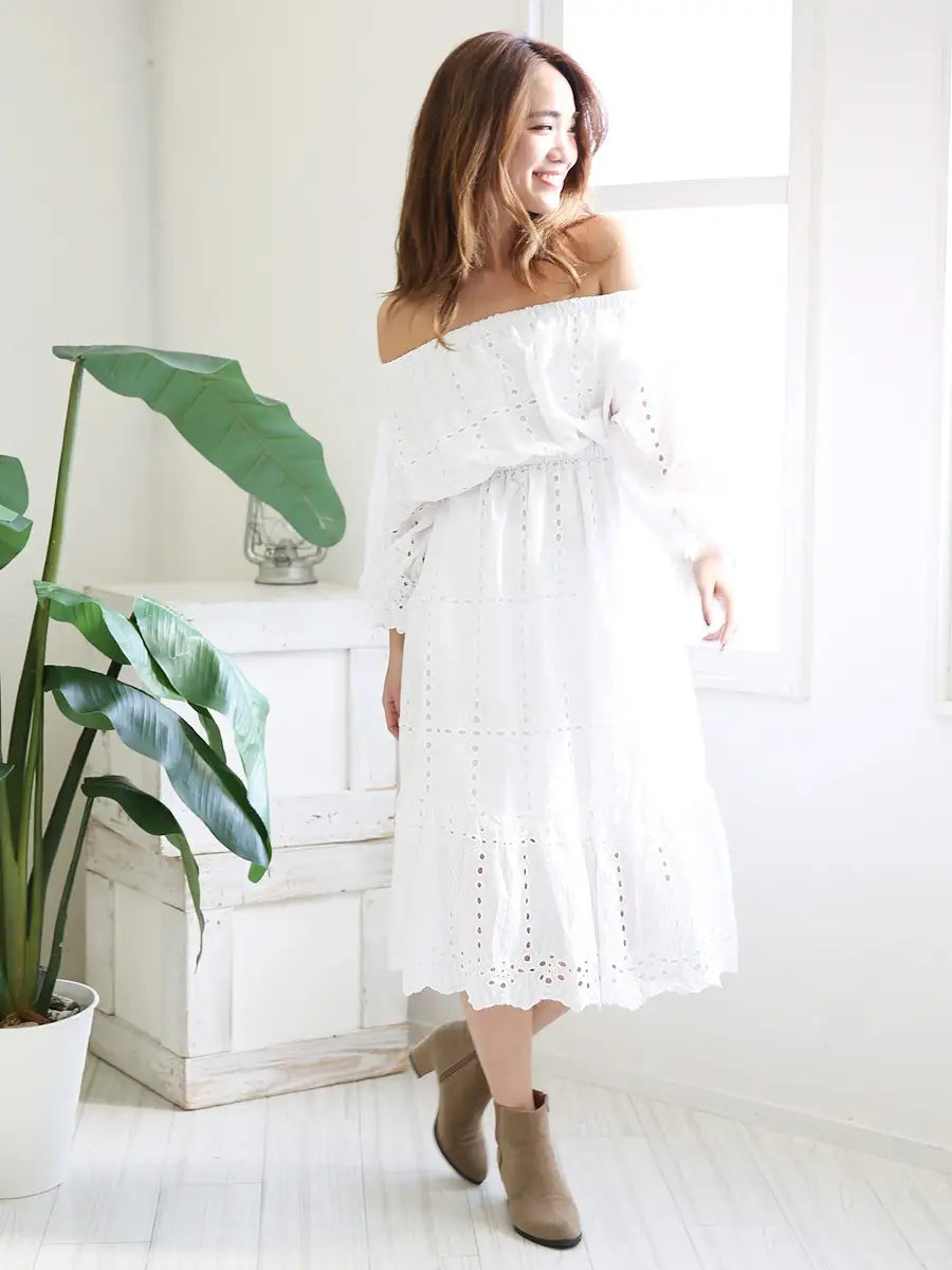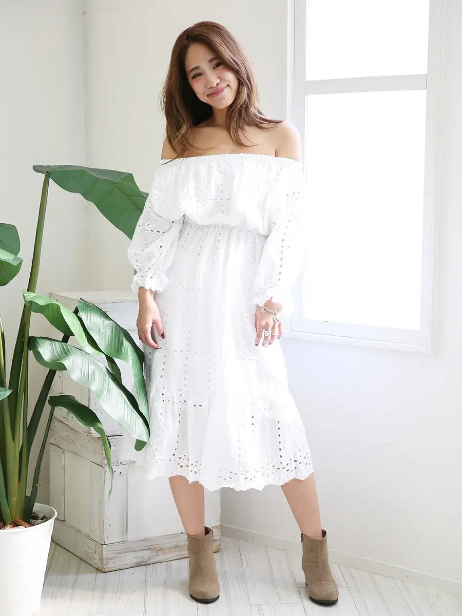 roomy by the sea(ルーミーバイザシー)オフショル刺繍マキシワンピース