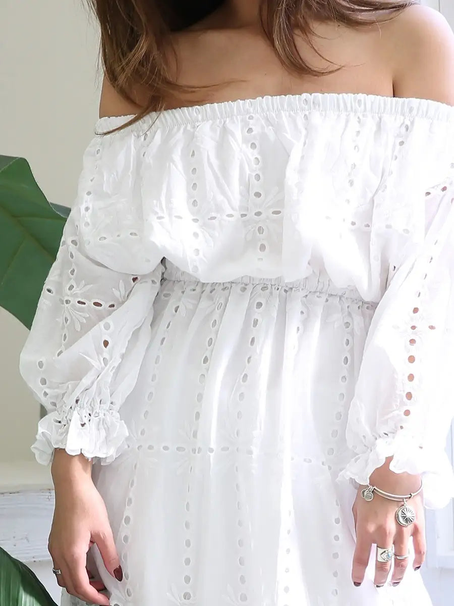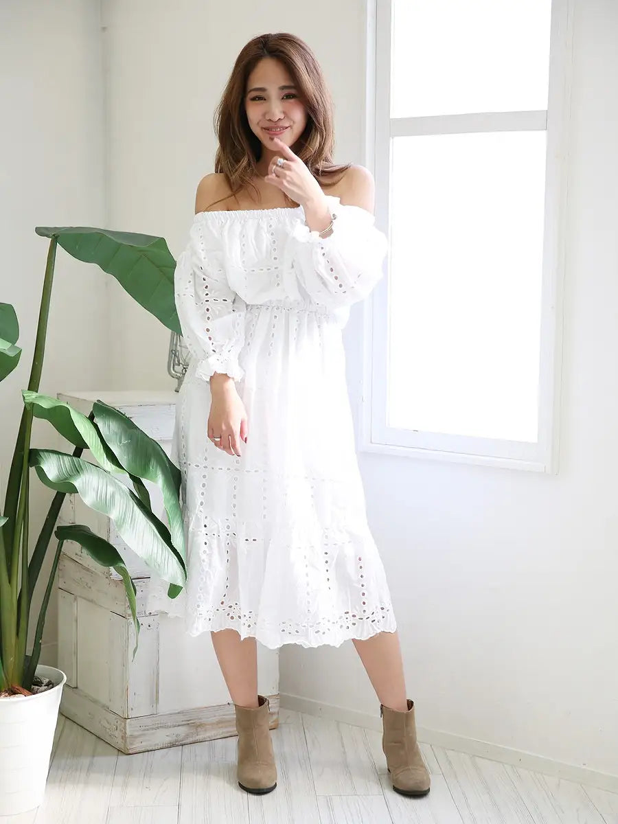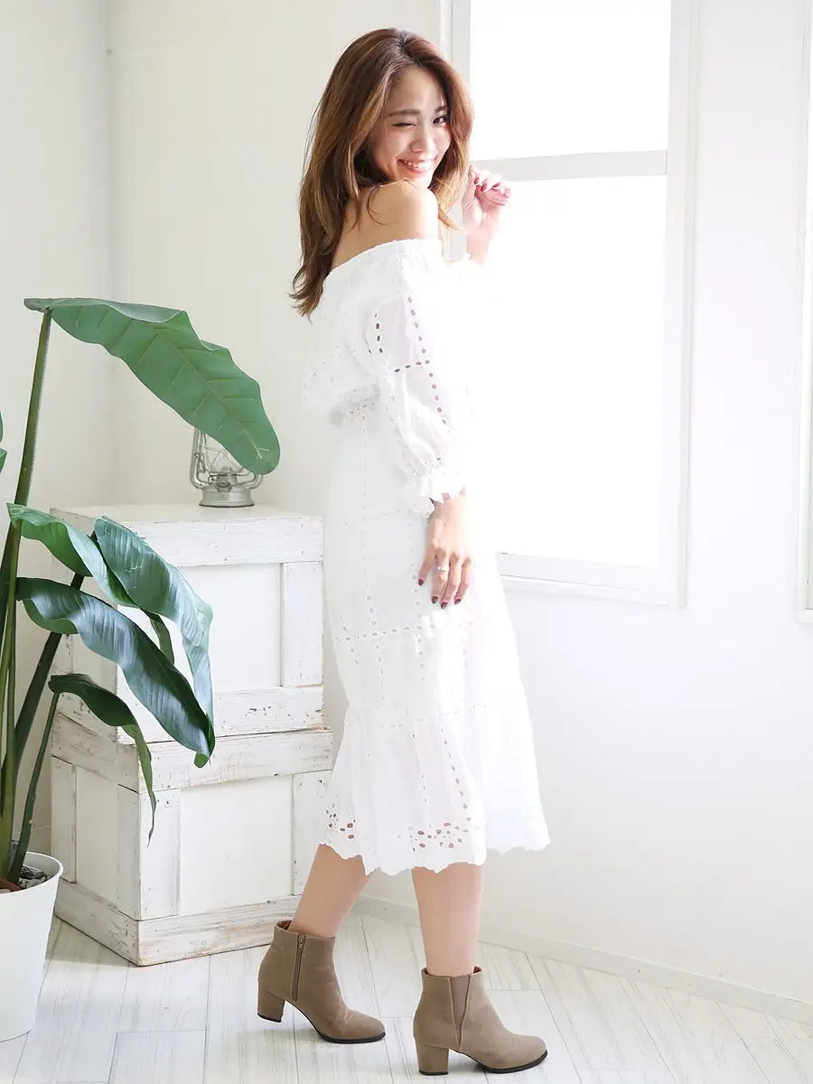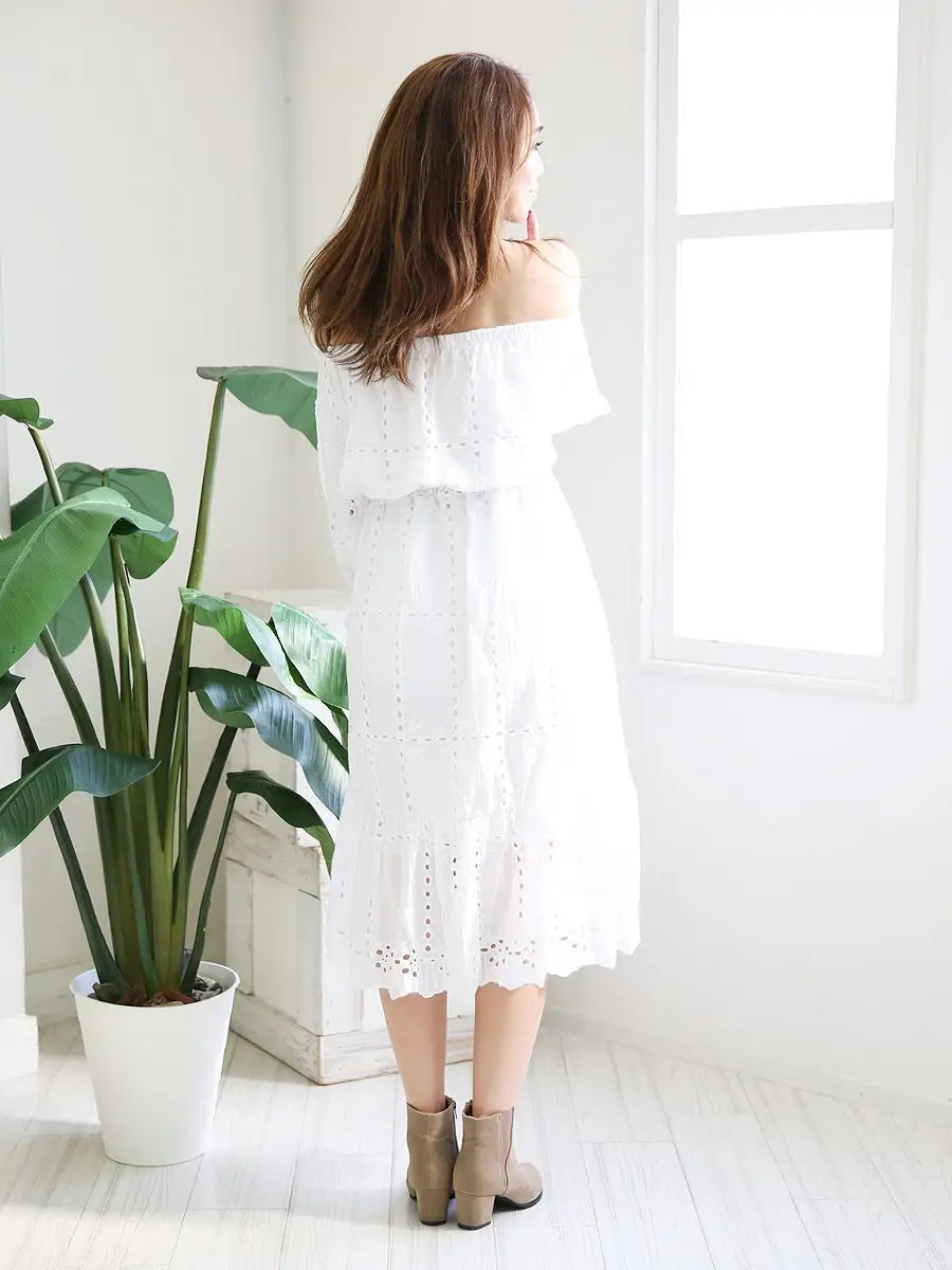 roomy by the sea(ルーミーバイザシー)オフショル刺繍マキシワンピース