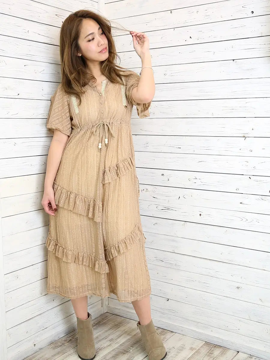 roomy by the sea(ルーミーバイザシー)レーシーフリルマキシワンピース